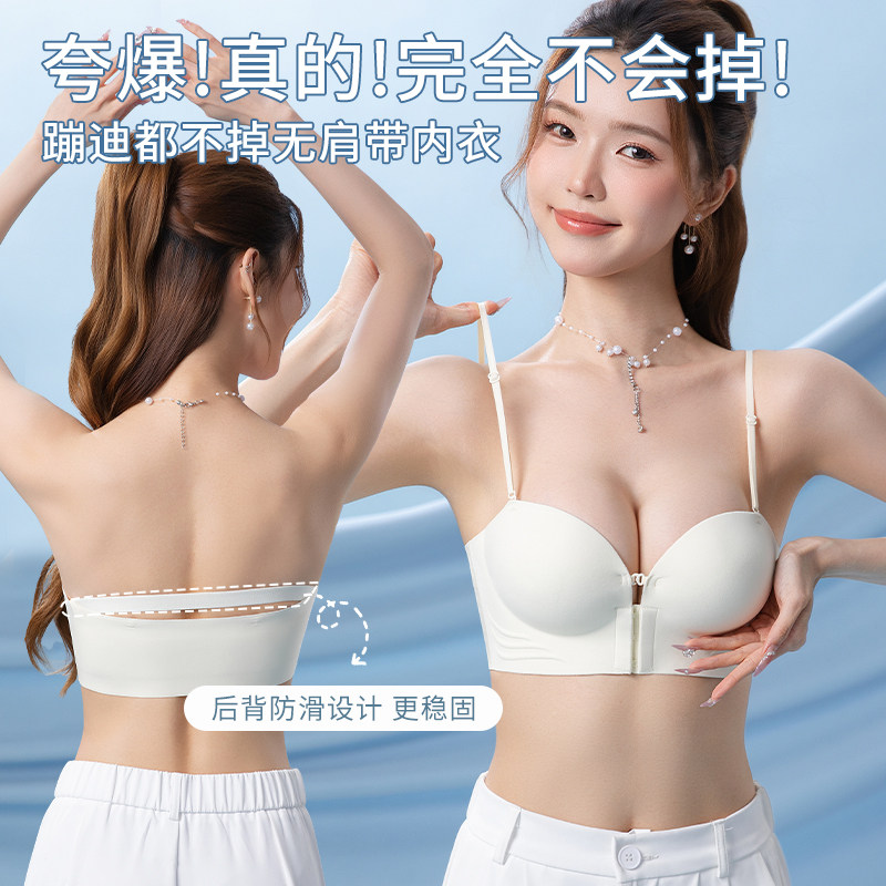 加厚杯无肩带外扩内衣女小胸聚拢防滑显大5cm前扣裹胸平胸用抹胸