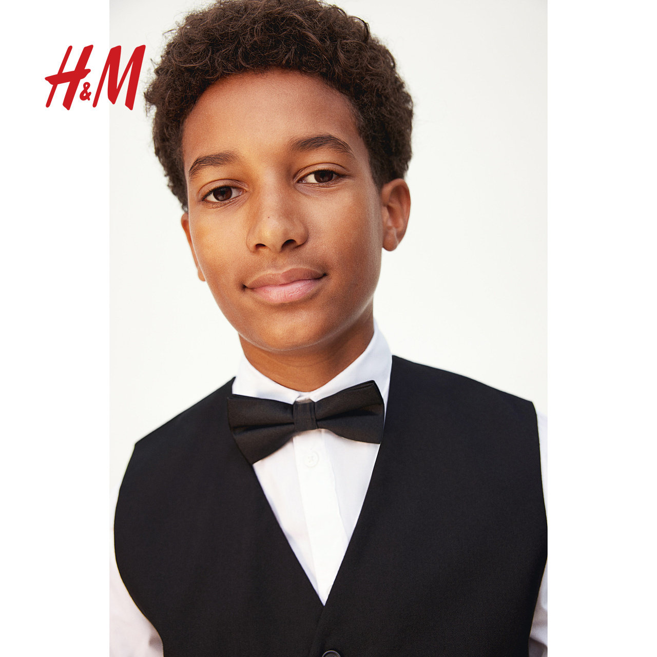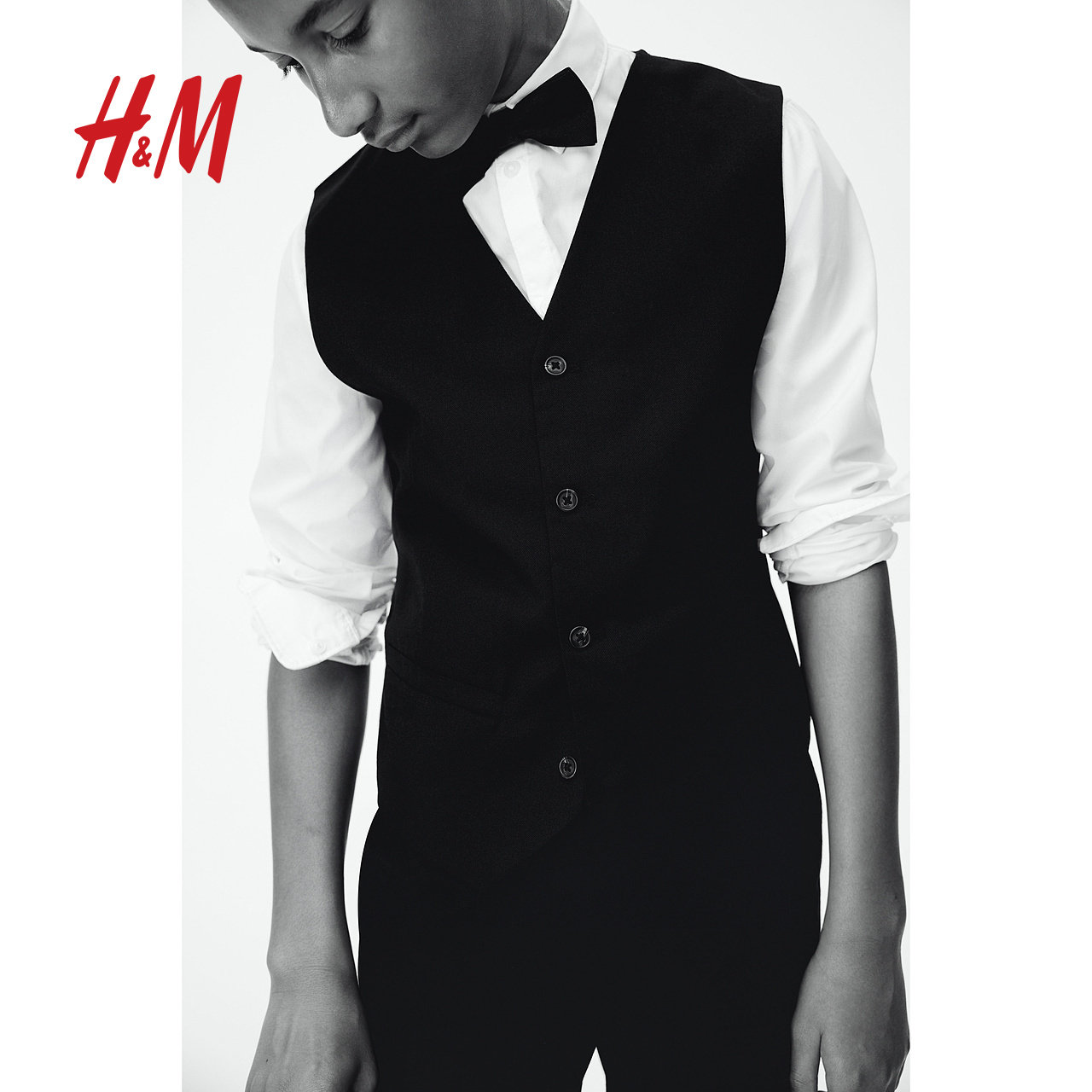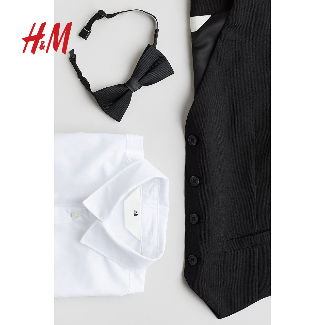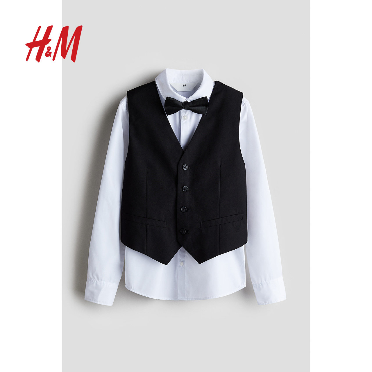 HM春季3件式童装儿童男童正装套装翻折领衬衫搭配马甲领结1232967