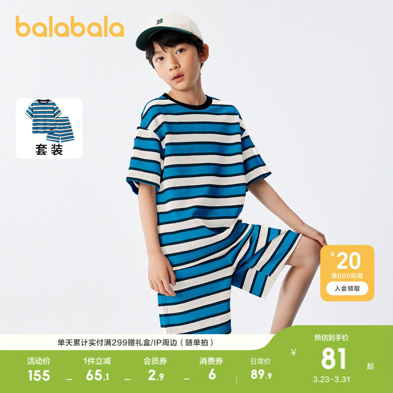 巴拉巴拉童装儿童套装夏季男童夏装2026中大童两件套撞色休闲时尚