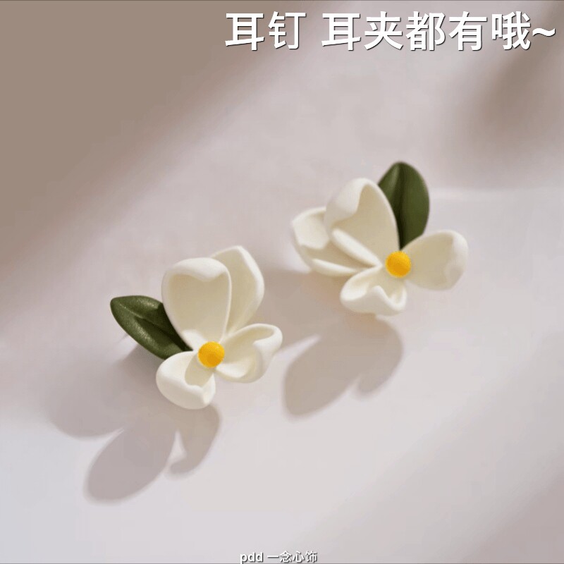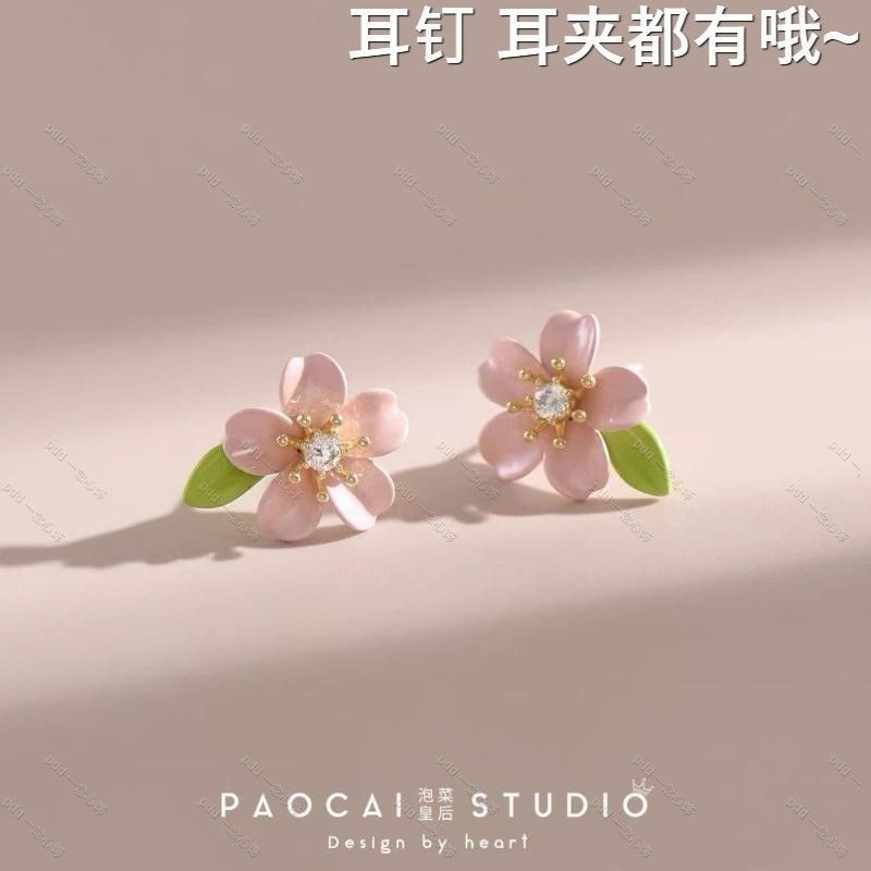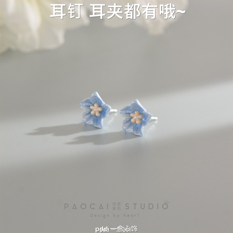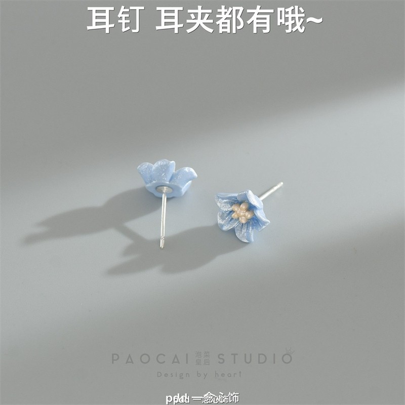 普鲁士蓝山茶 春夏新款花朵耳钉小巧精致甜美气质耳环无耳洞耳夹