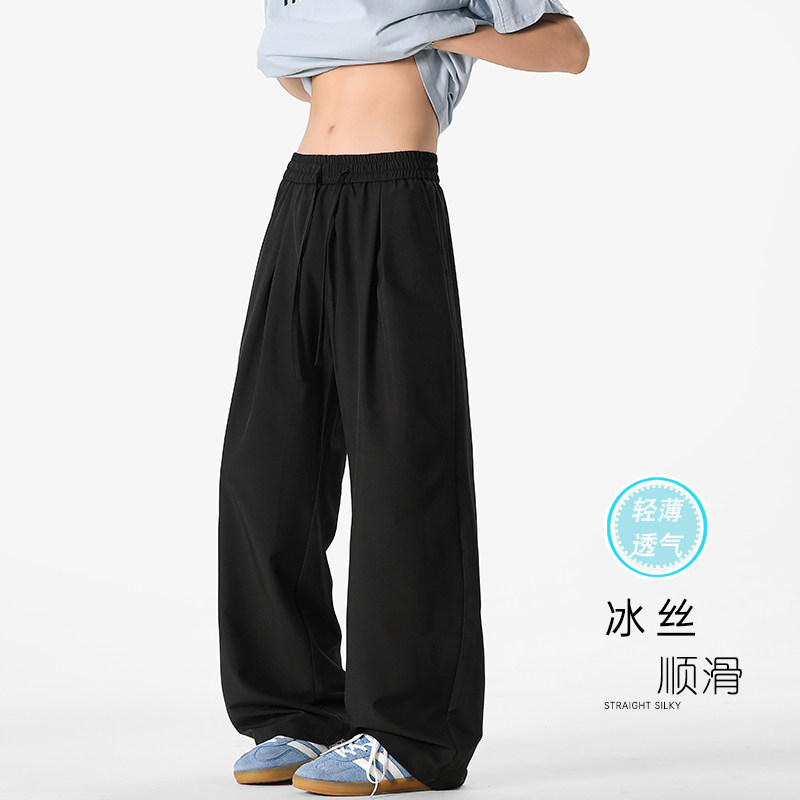 回力冰丝裤子男士夏季薄款2025新款凉感弯刀休闲长裤宽松直筒西裤