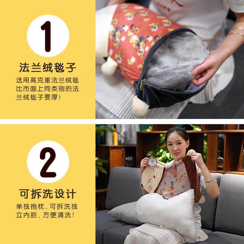 加厚加绒图拉拉抱枕被子两用汽车载午休盖被办公室宿舍冬季折叠毯