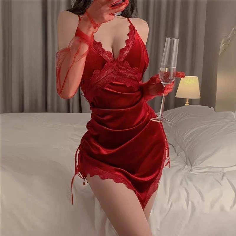 红色精致高级感法式性感蕾丝大尺码睡衣女2025年新款金丝绒吊带睡