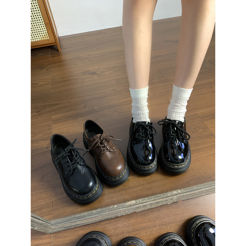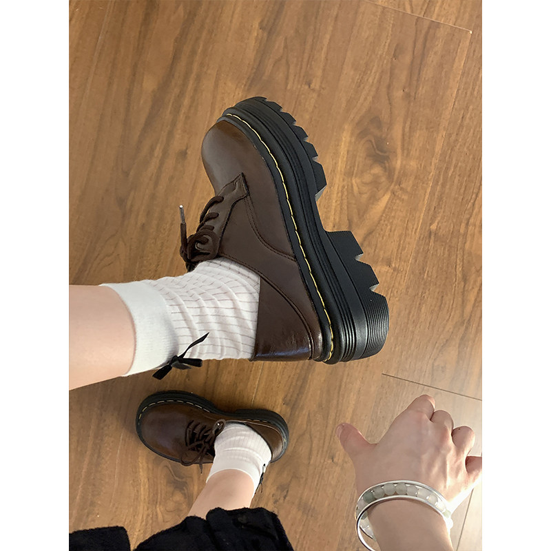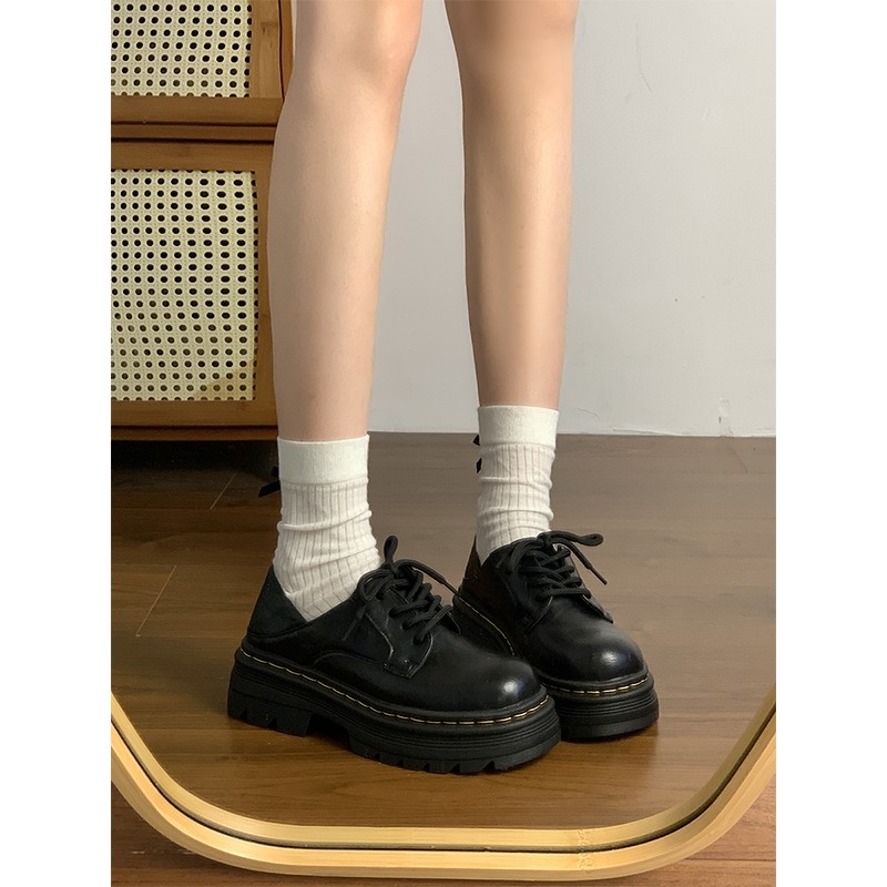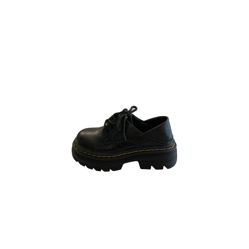 圆头系带黑色小皮鞋女2025年春秋季新款厚底增高单鞋子英伦风爆款
