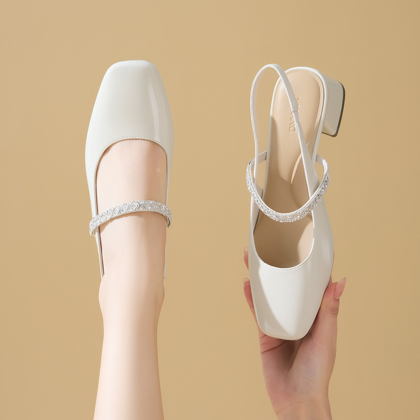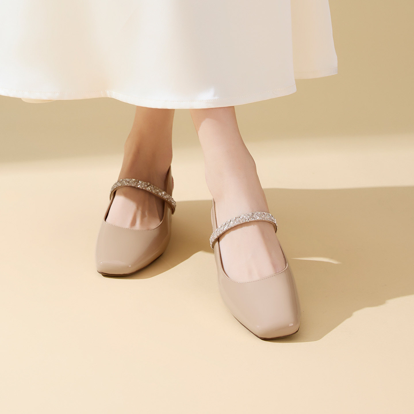 奥康 女鞋2026春夏季新款裸色单鞋粗跟小皮鞋玛丽珍包头凉拖凉鞋