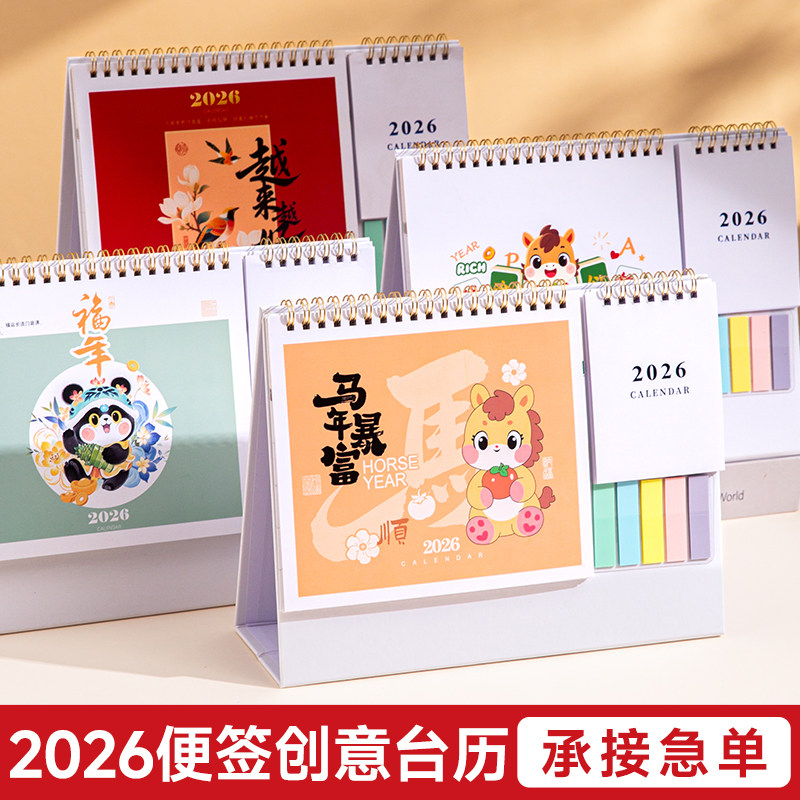 台历2026年创意便签办公计划本商务桌面摆件月历ins风自律打卡日历礼盒记事本马年广告年历定制工作印刷logo