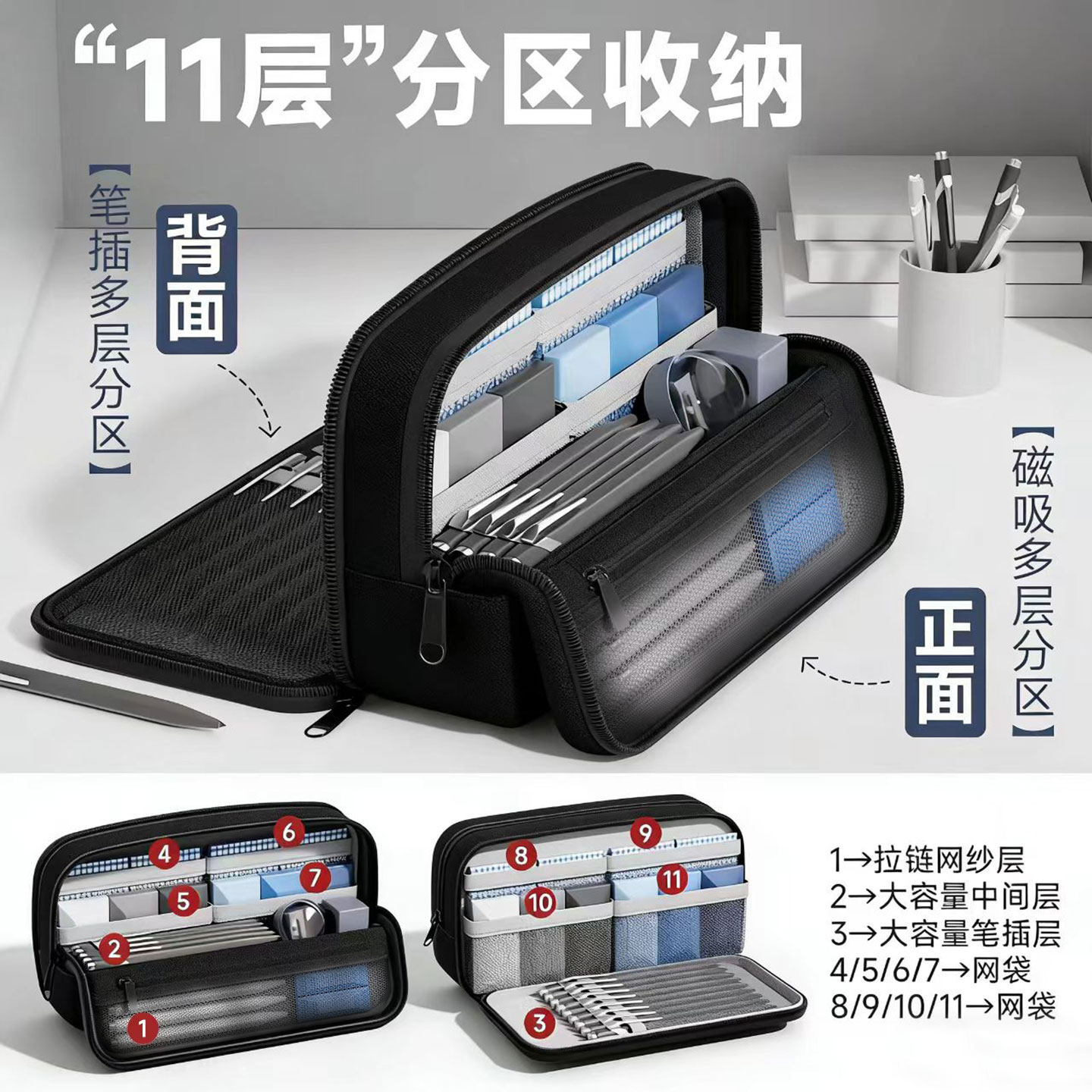 磁吸大容量笔袋铅笔文具笔盒可立式初中高中生女孩2026新款高颜值ins超火小众不撞款男孩儿童小学生笔袋痛包