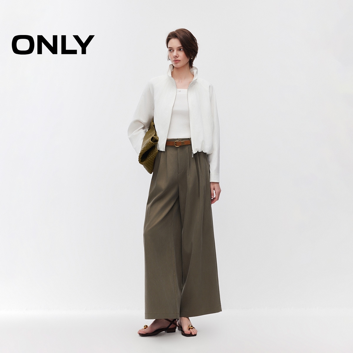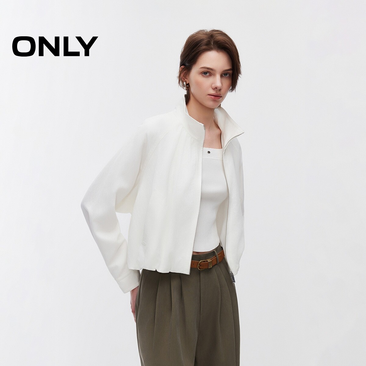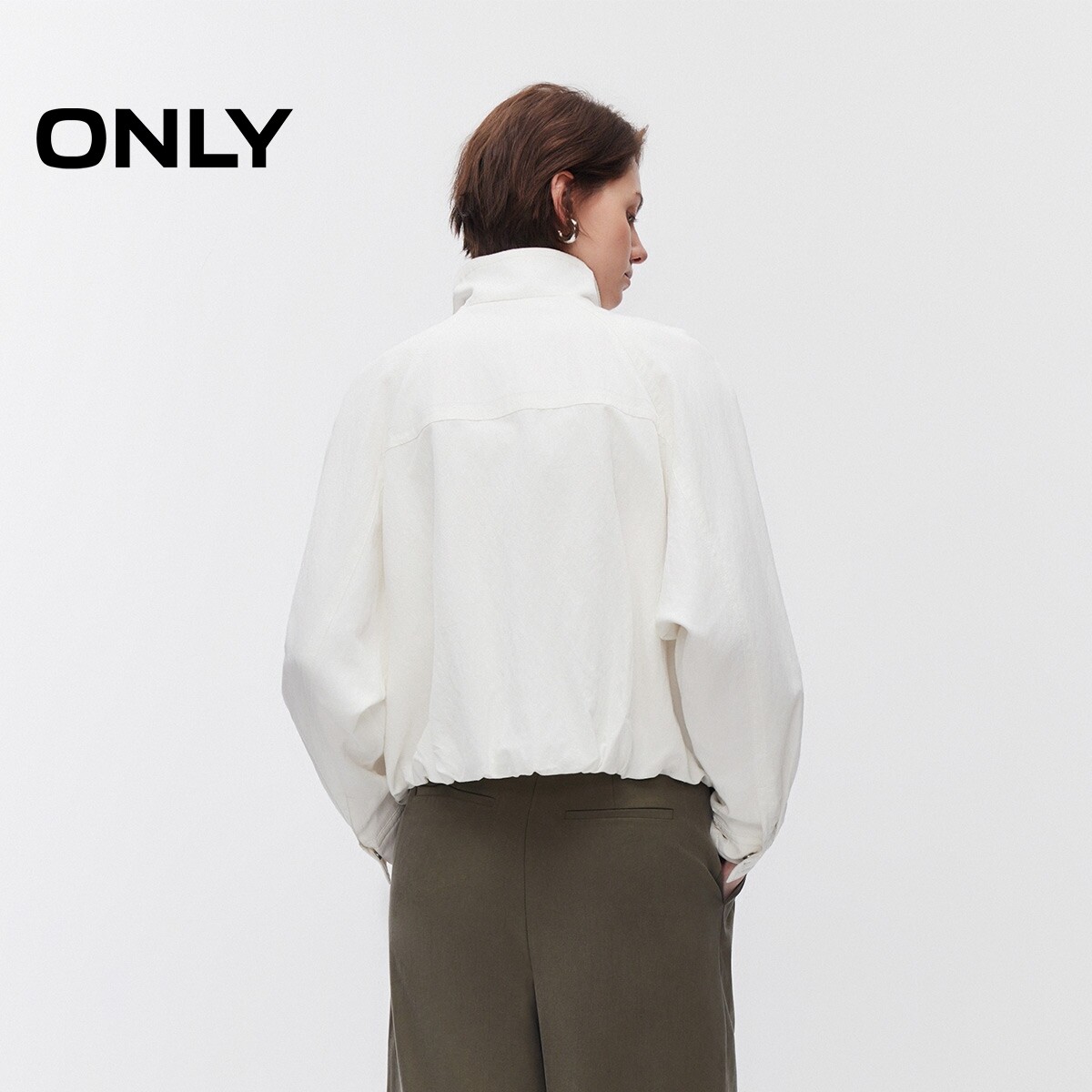 ONLY2026春季新款莱赛尔立体花苞下摆宽松插肩袖纯色短款外套女
