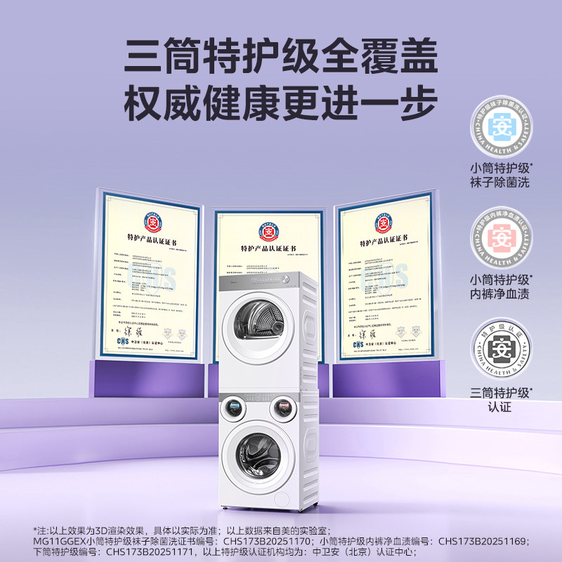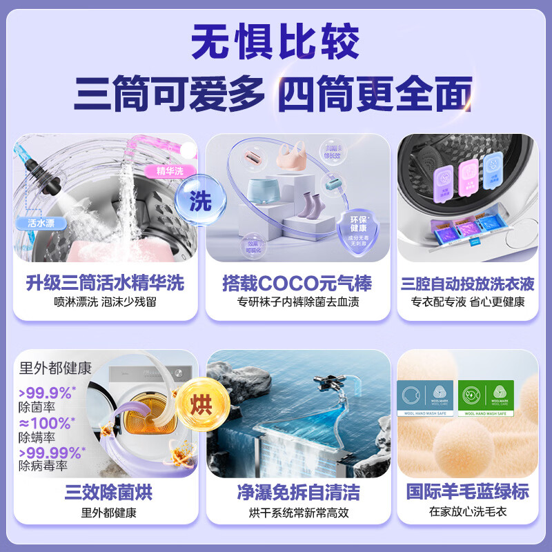 【新品上市】美的可爱多11kg洗+10kg烘懒人四筒分区除菌洗烘套装