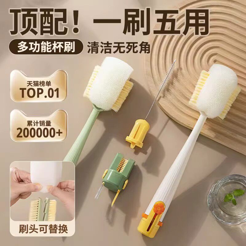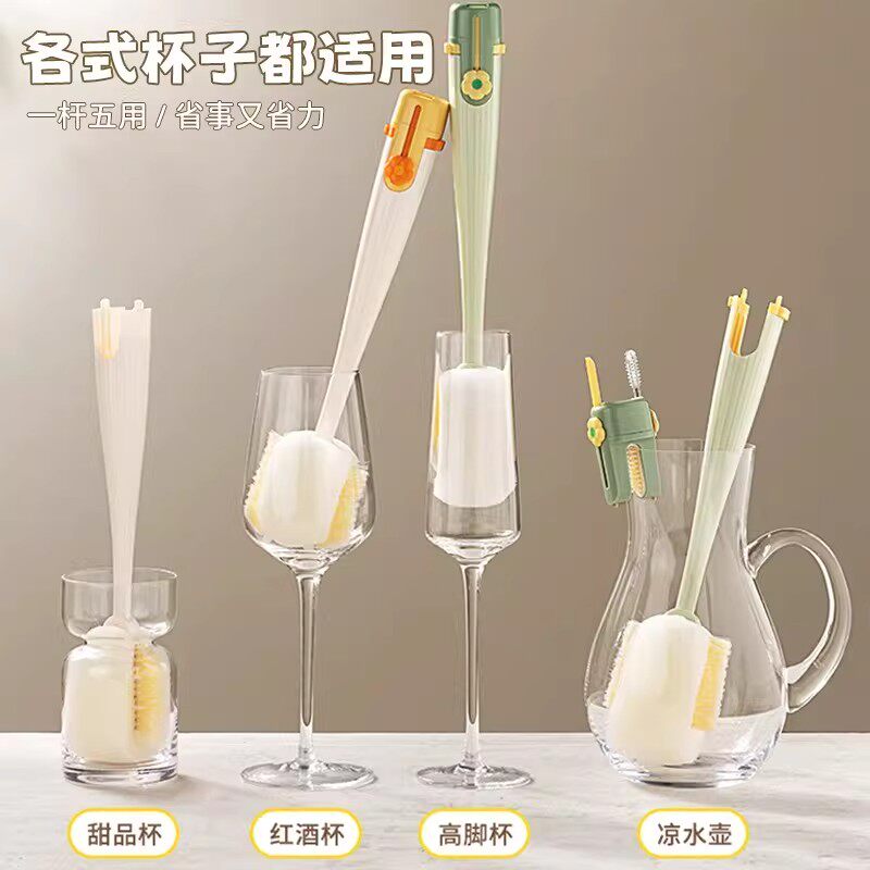 杯刷水杯清洗神器长柄多功能五合一保温杯盖刷奶瓶专用清洁海绵刷