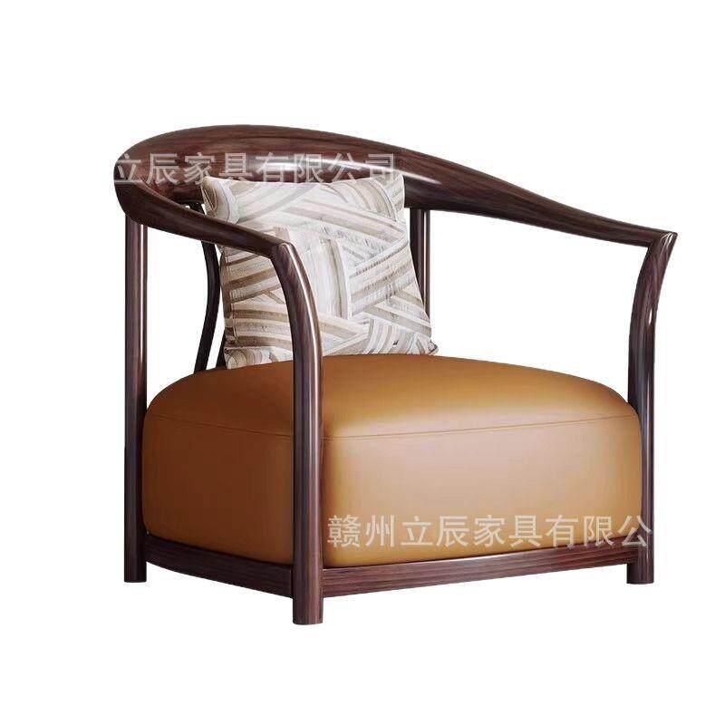 新中式实木休闲椅乌金木太师椅轻奢客厅茶椅书房椅小户型阳台家具
