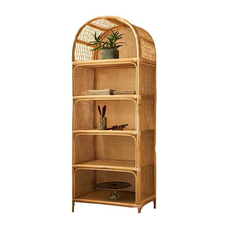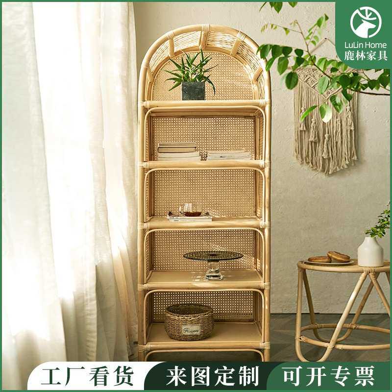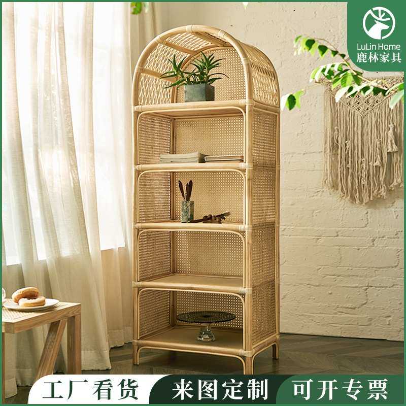 北欧真藤书架北欧简约全藤书柜置物架家用展示柜书房藤编民宿家具