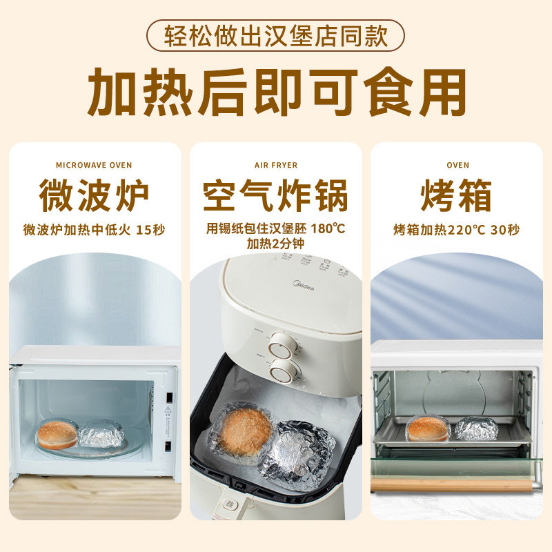 现货美式汉堡胚汉堡包家用商用面包胚皮早餐汉堡半成品即食微波炉
