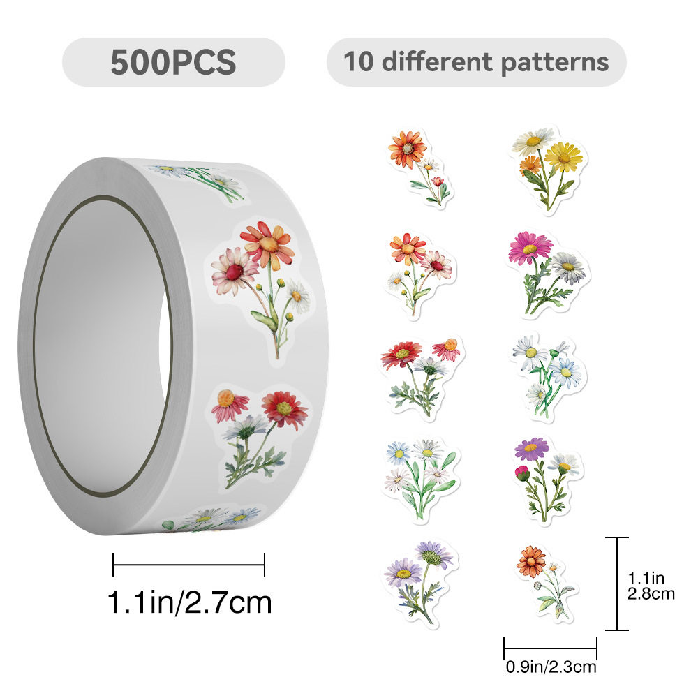 1000贴雏菊野花卷卷贴ins风简约文艺小清新植物花卉素材贴便签贴