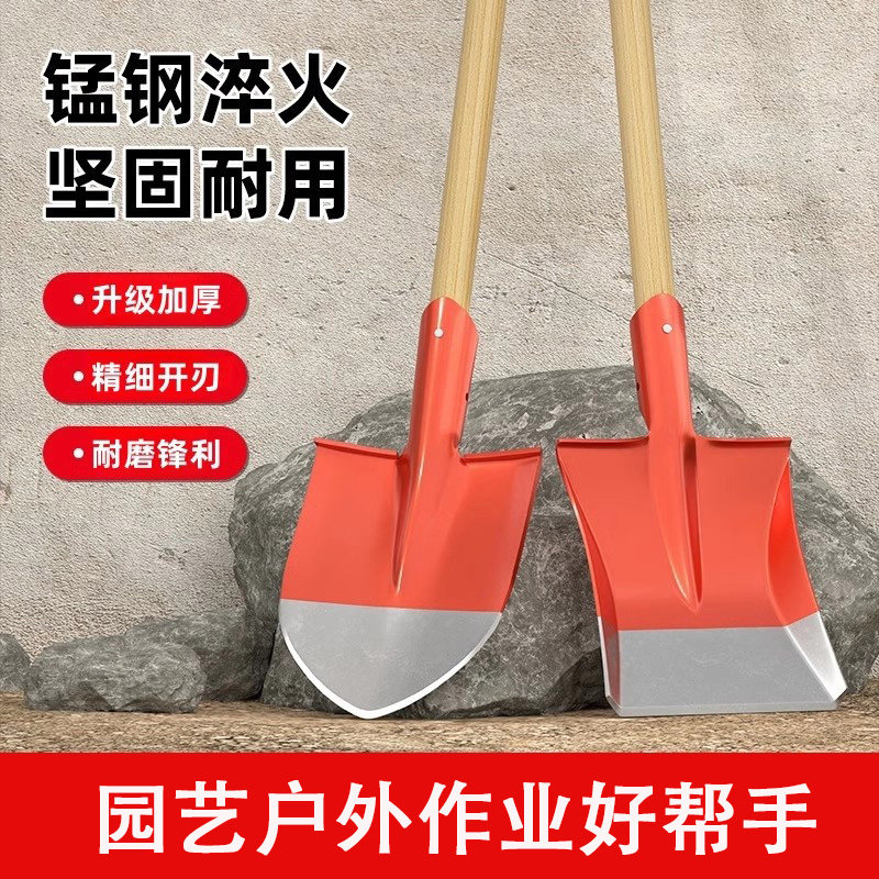 铁锹农用钢锹挖土淬火锰钢钢锹高硬度尖钢锹混泥土铁铲方锹尖锹