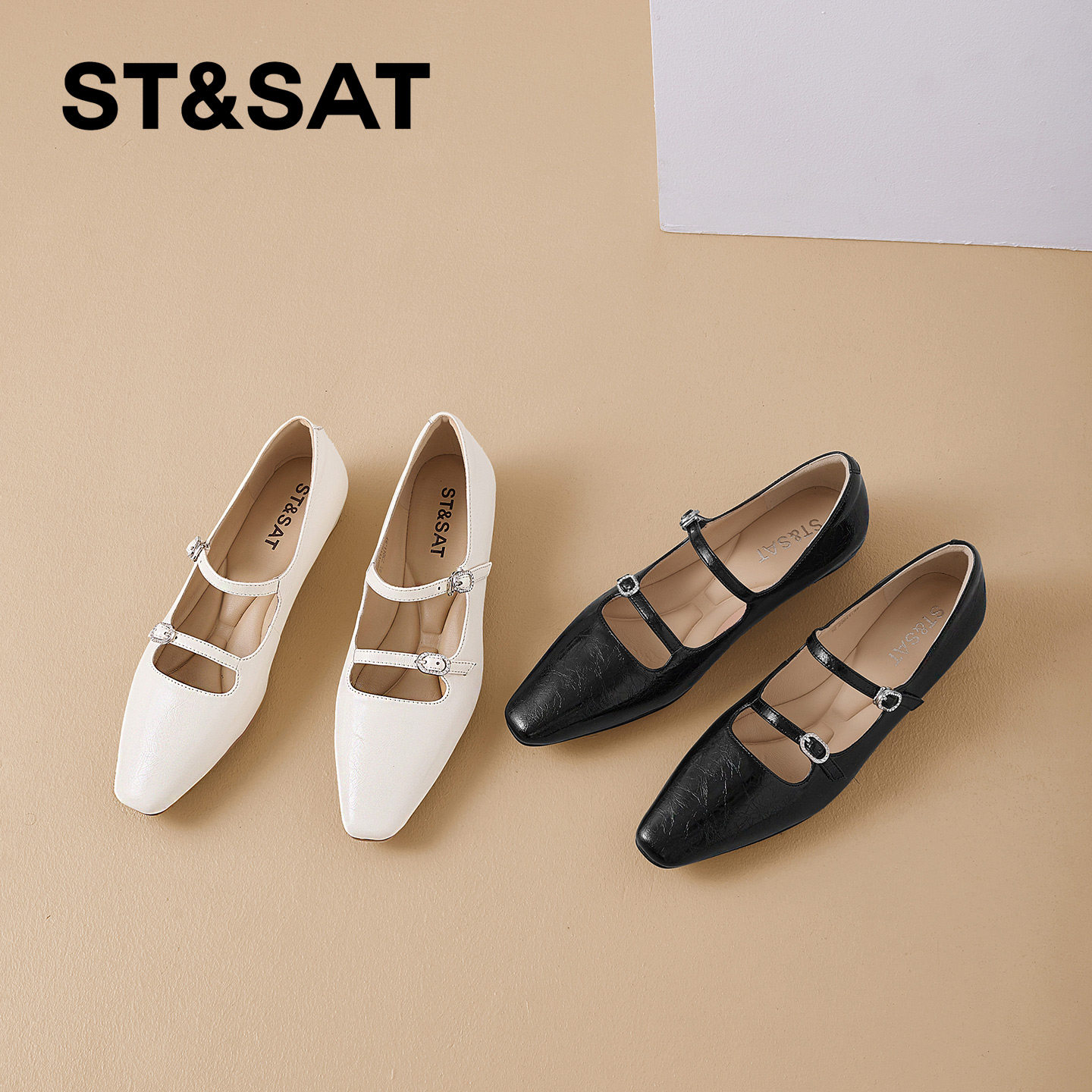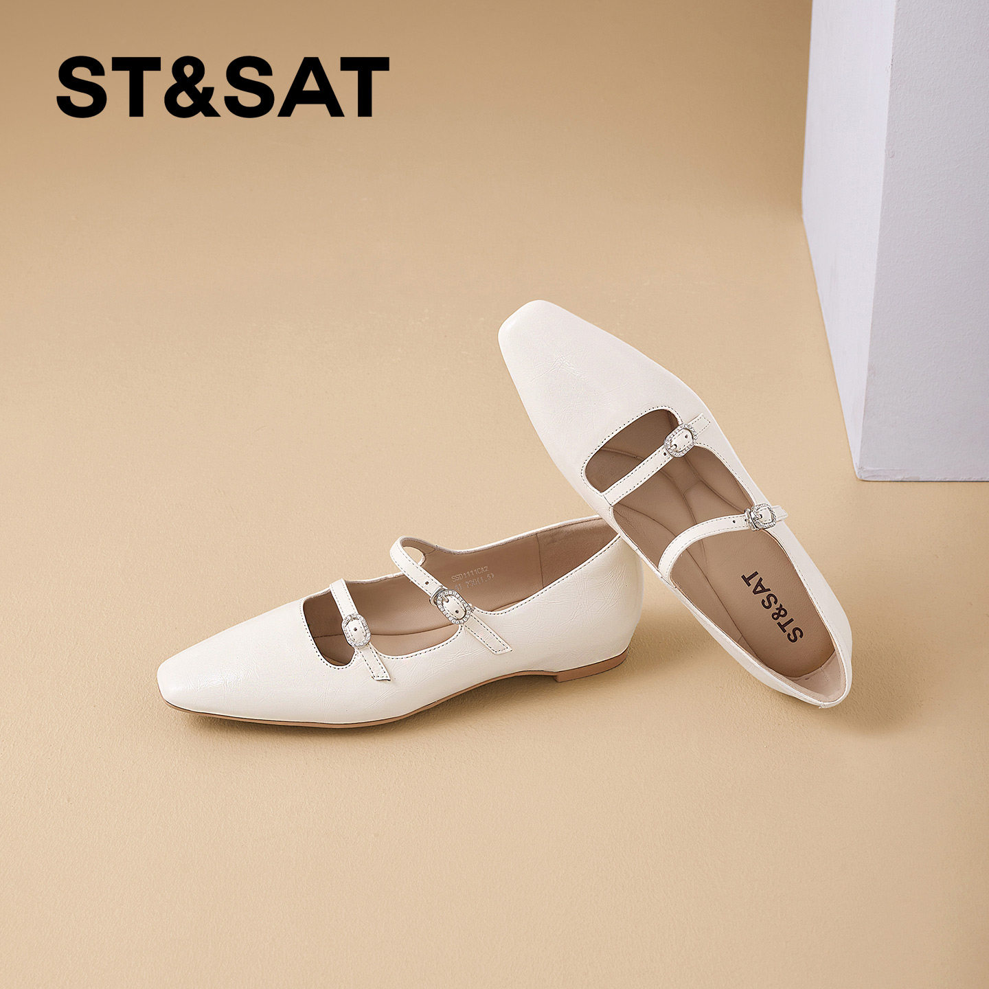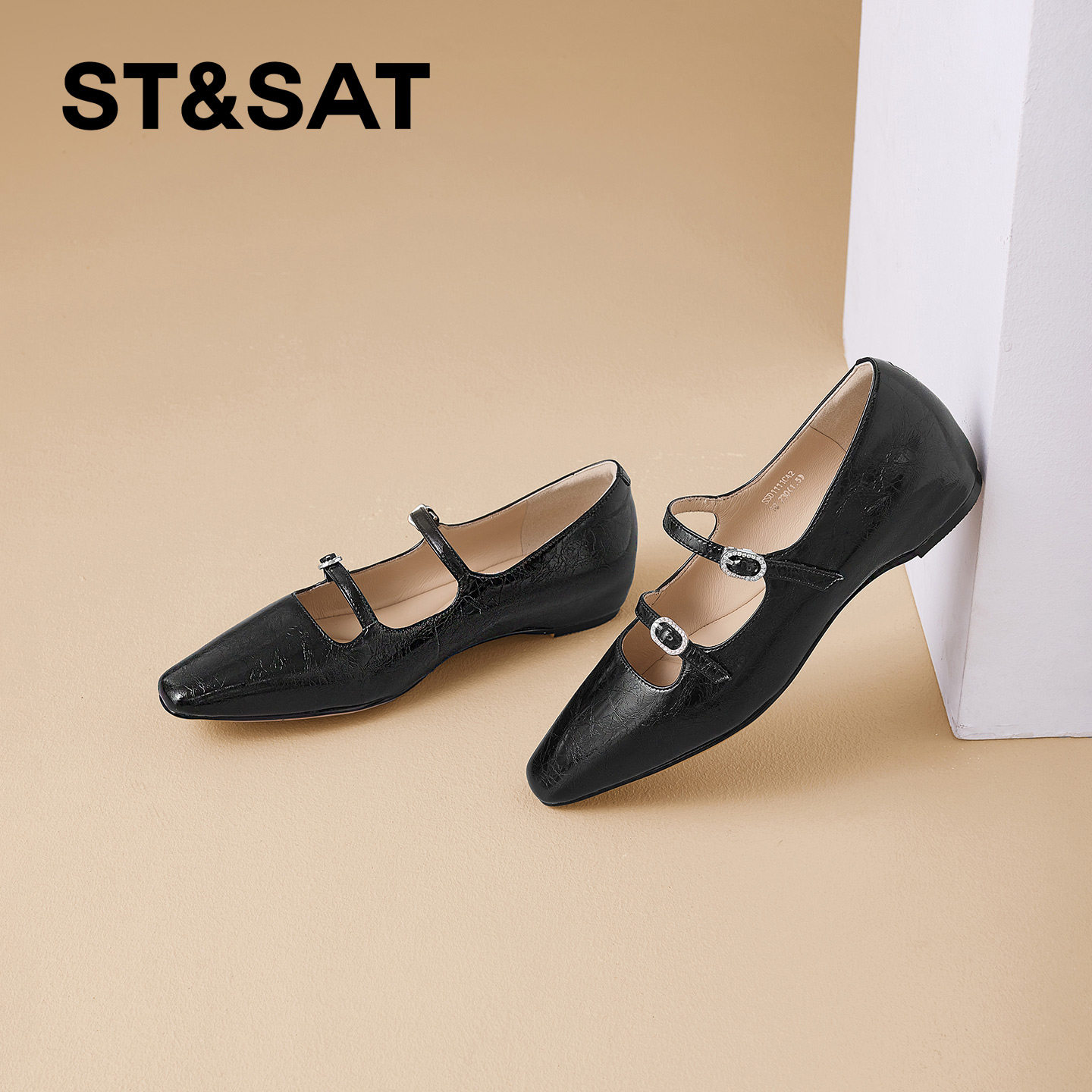 星期六真皮优雅玛丽珍鞋女年春季新款内增高坡跟方头浅口单鞋