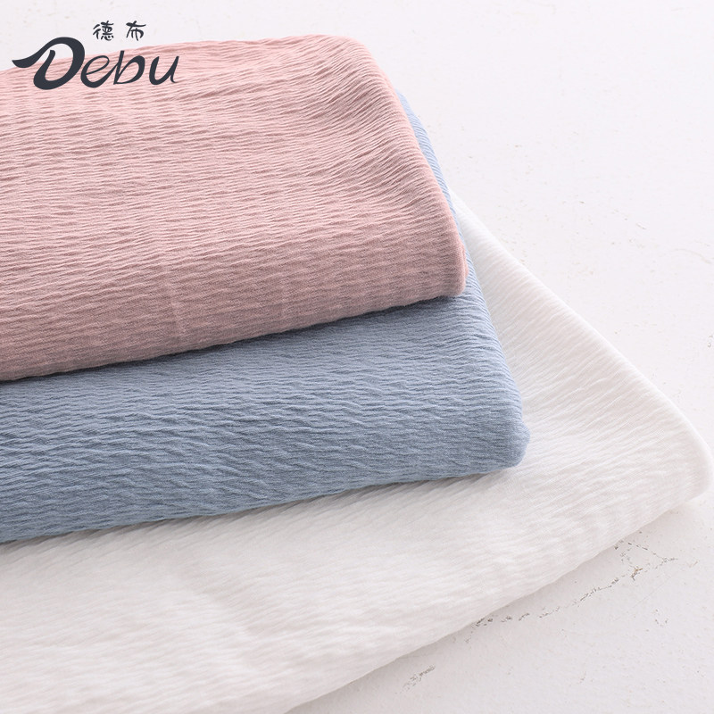 纯棉A类夏季薄款宝宝衣服针织布料有弹力缩皱皱巴的面料透气亲肤