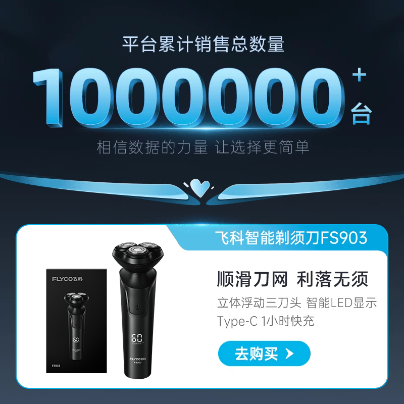 飞科剃须刀电动男士刮胡刀胡须刀智能快充旗舰正品男友礼物FS903