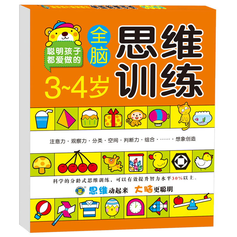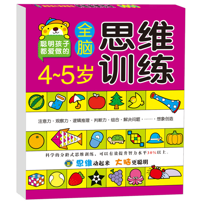 幼儿全脑思维训练2-3-4-5-6-7岁到幼儿园宝宝启蒙早教益智数学逻辑专注力左右潜能开发书规律填空连线作业本