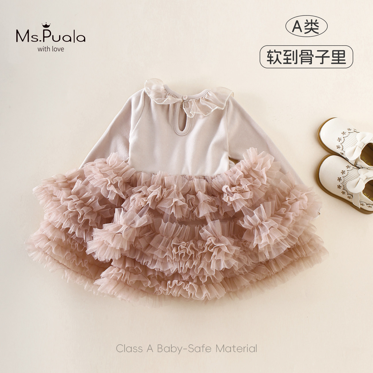 Ms.Puala女童宝宝连衣裙秋冬韩系童装婴幼童公主裙百搭蛋糕蓬蓬裙