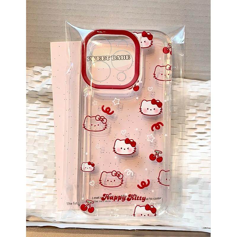 樱桃KT猫透明适用iPhone苹果17pro手机壳时尚16/15plus/12promax/14/13/11小米vivo华为oppo高级感保护套外壳