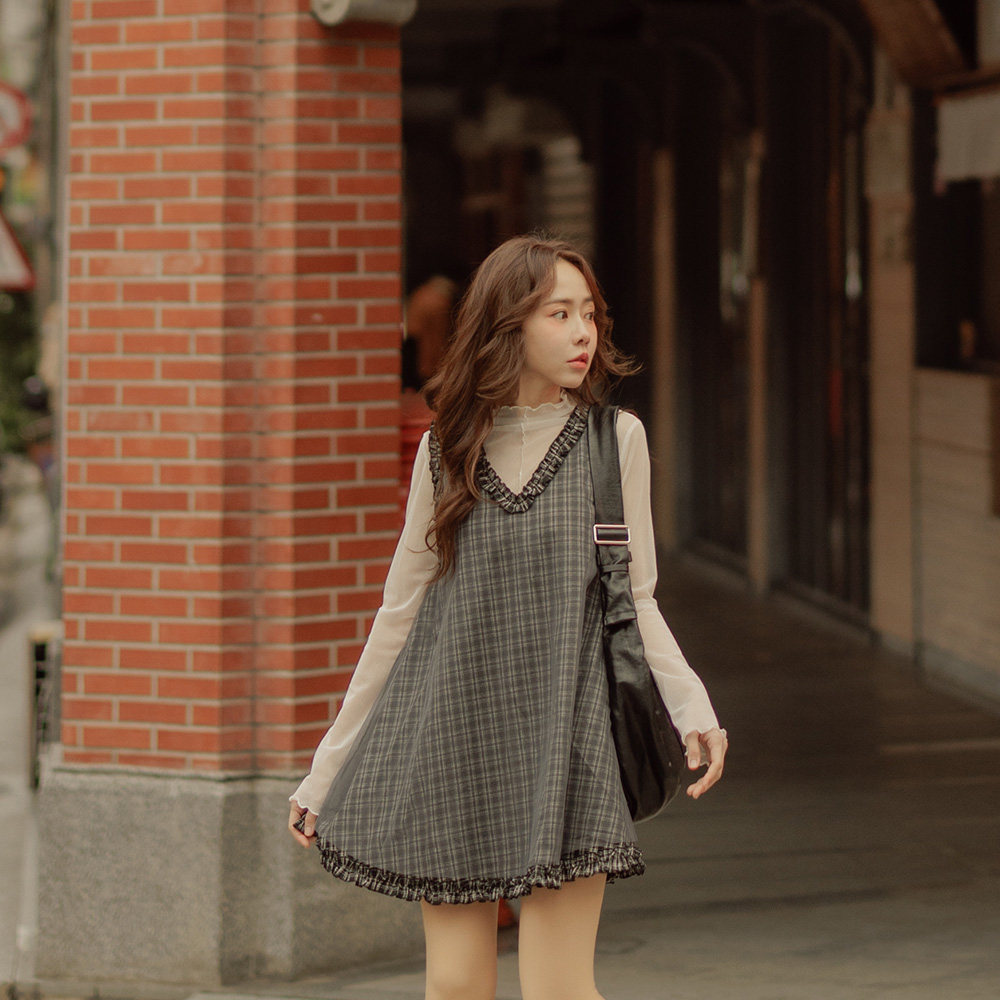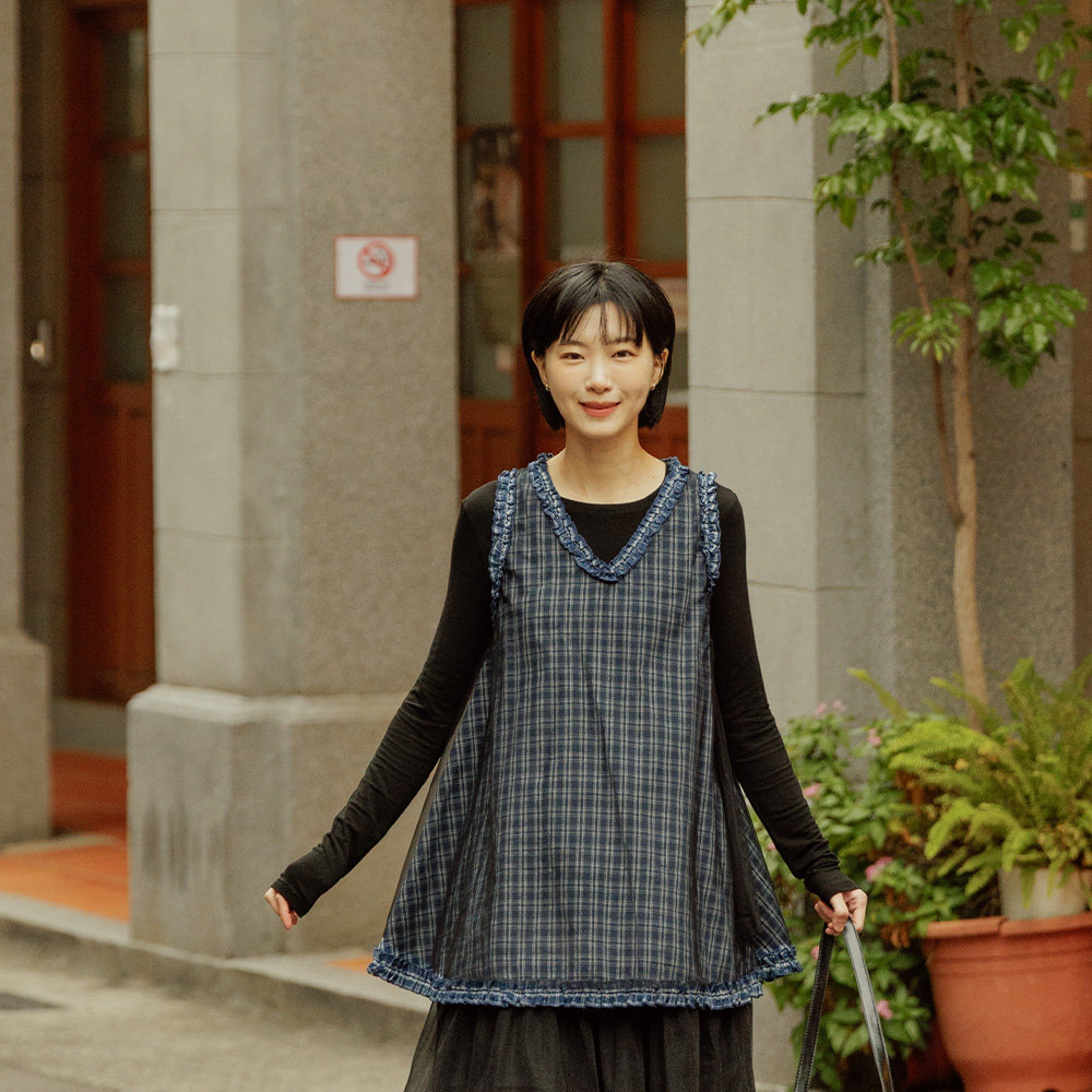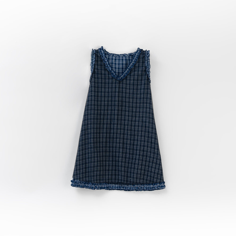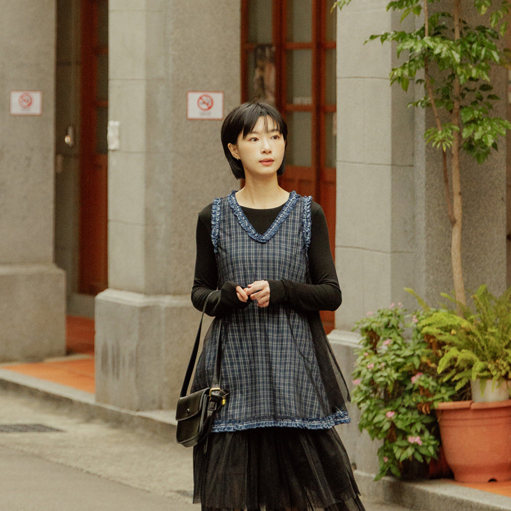 QUEENSHOP 2026春夏新品女装双层格纹透纱荷叶背心连衣裙01099560