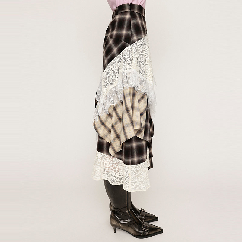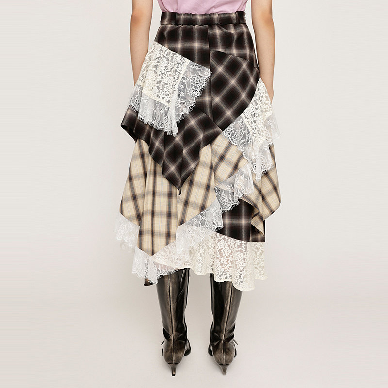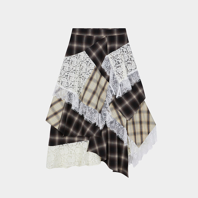 SLY 夏季甜心少女不规则蕾丝拼接半身裙女030ISZ31-5431