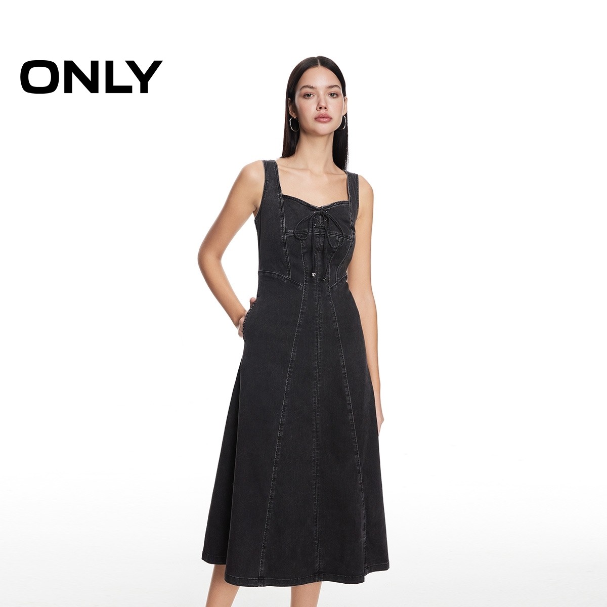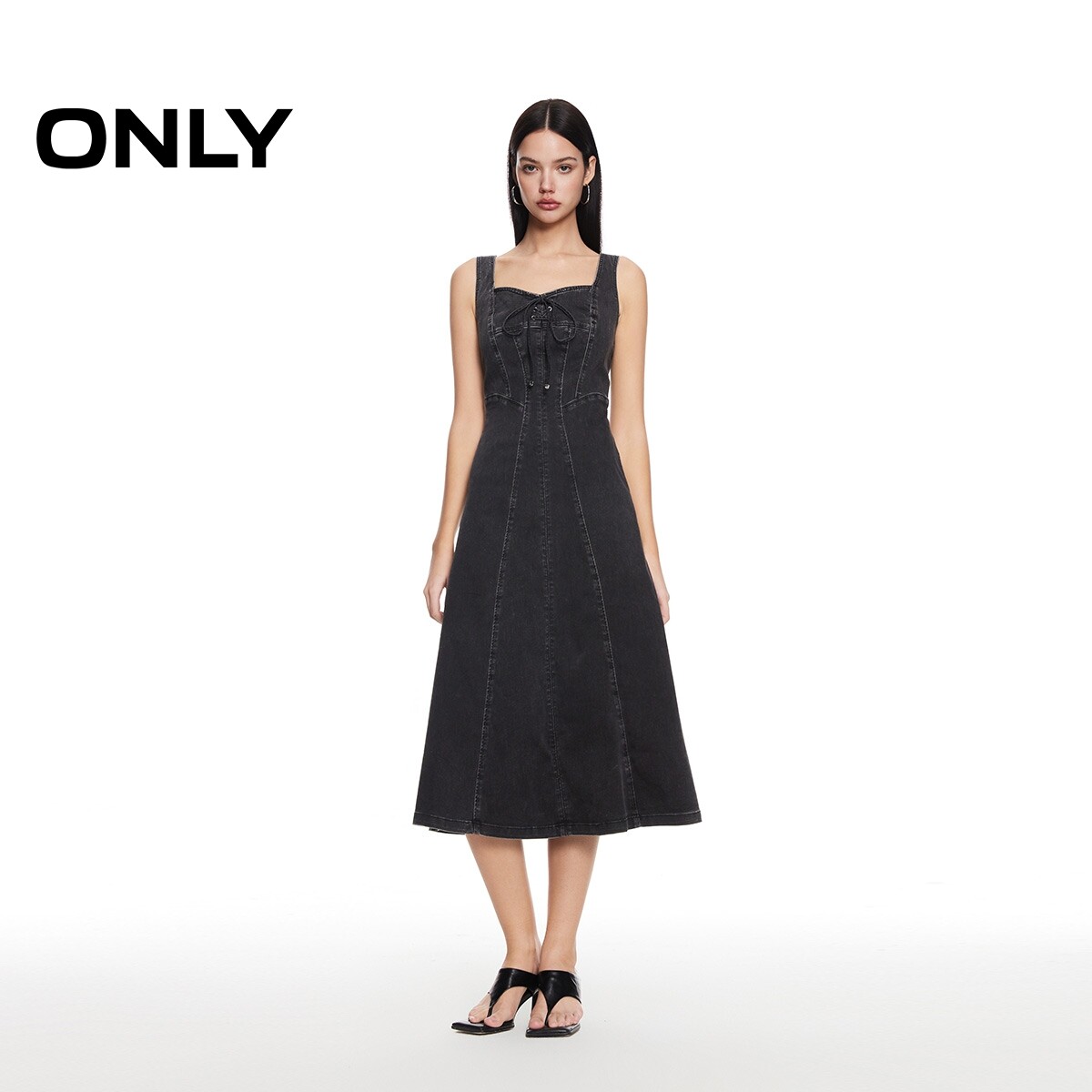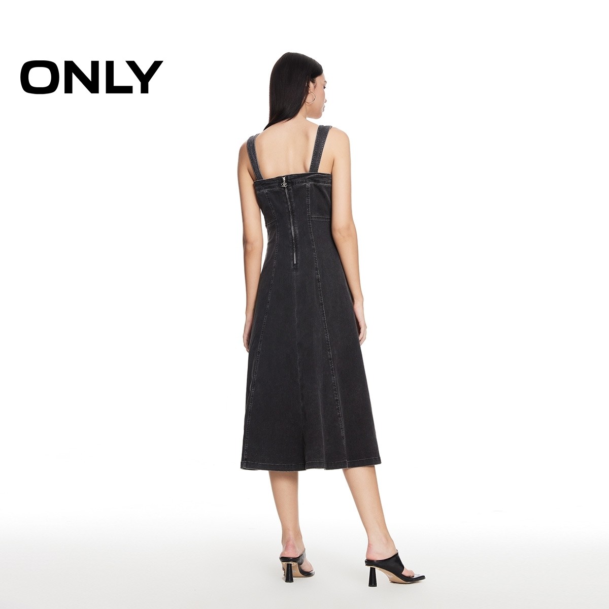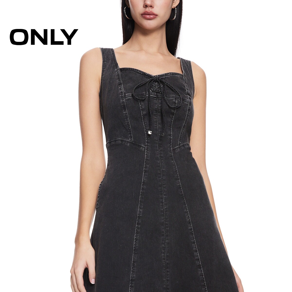 【ONLY奥莱】春季新款时尚百搭收腰吊带伞裙牛仔连衣裙女