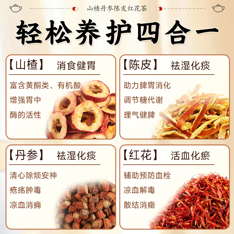 山楂丹参红花陈皮组合茶正品官方旗舰店泡水喝的功效与作用中药材