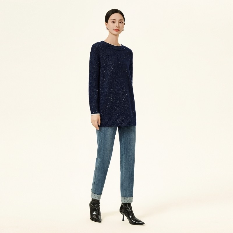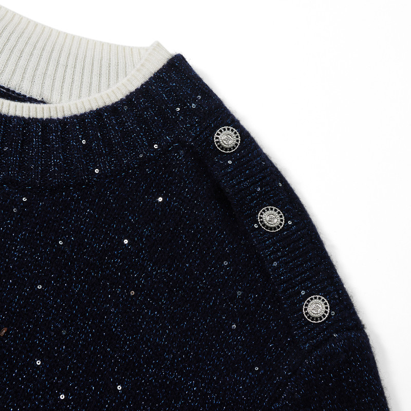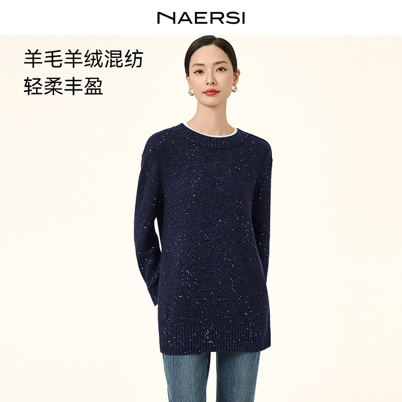 NAERSI/娜尔思羊毛羊绒混纺毛针织衫闪烁优雅亮片2025年冬季新款