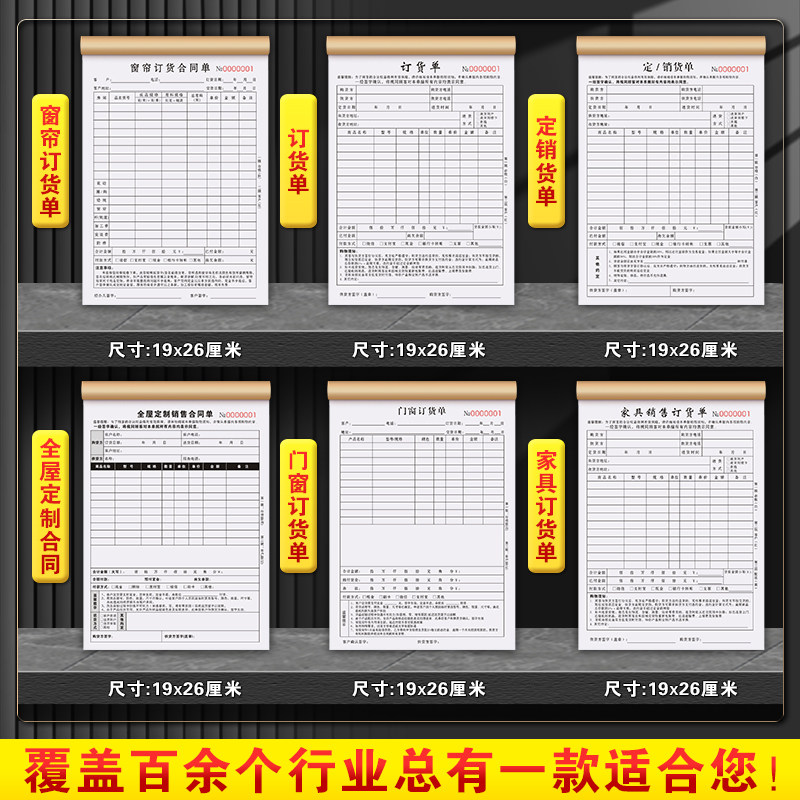门窗合同二联定制窗帘店销售接单下单订单本三联窗户预订收据清单安装加工购销协议测量预算报价表订购订货单