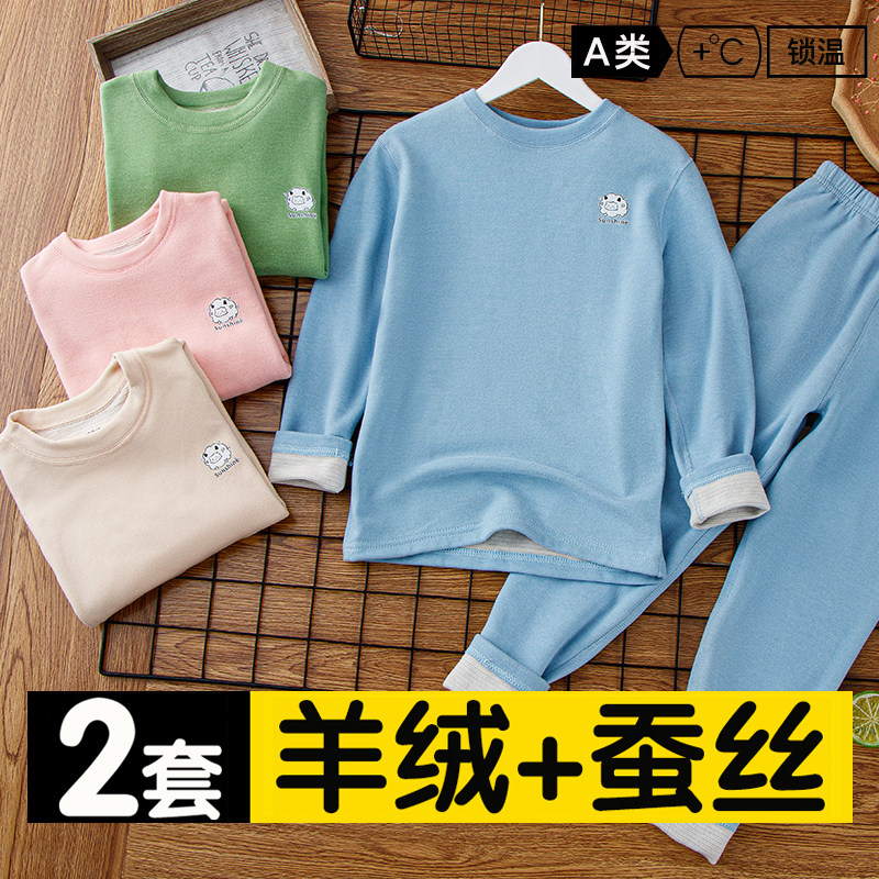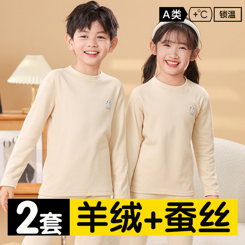 德绒儿童秋衣秋裤保暖内衣套装男童女童2024秋冬加绒宝宝大童蚕丝