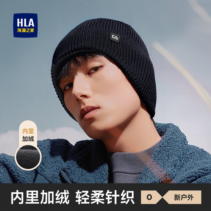 海澜之家针织帽男士新款秋冬保暖户外骑行防寒防风加绒毛线帽子潮
