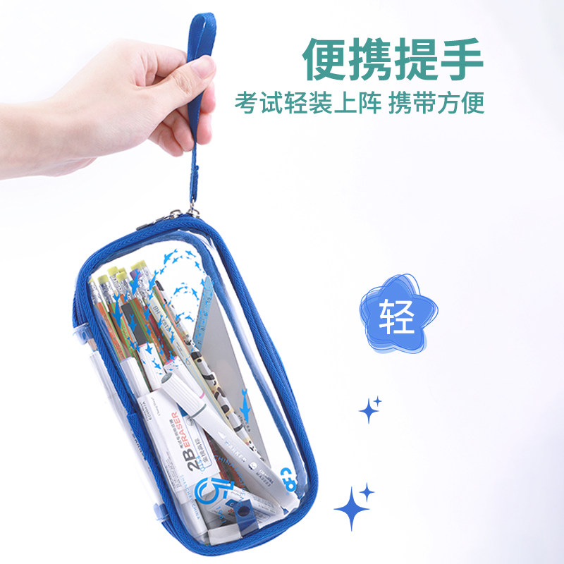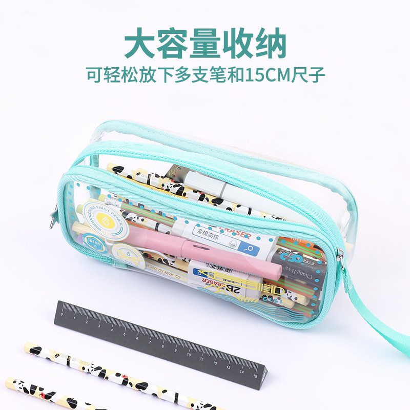 高颜值小方冻冰透感笔袋大容量可拆卸果冻质感学生文具盒ins风小清新超大文具盒简约透明票据果冻包
