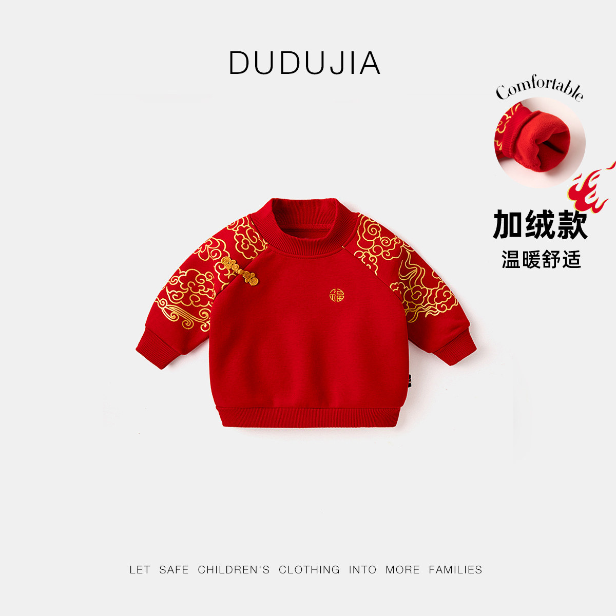 嘟嘟家拜年服加绒加厚儿童卫衣新年装男童唐装女童裙子过年服冬