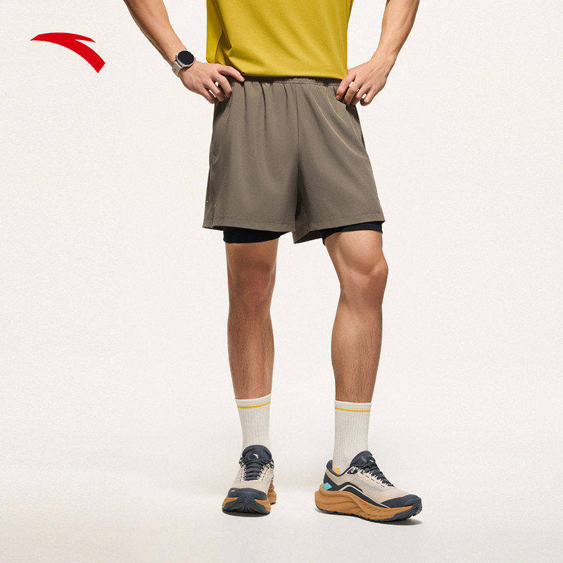 安踏零压速干裤丨C5跑步内衬假两件运动短裤男二合一压缩五分裤子