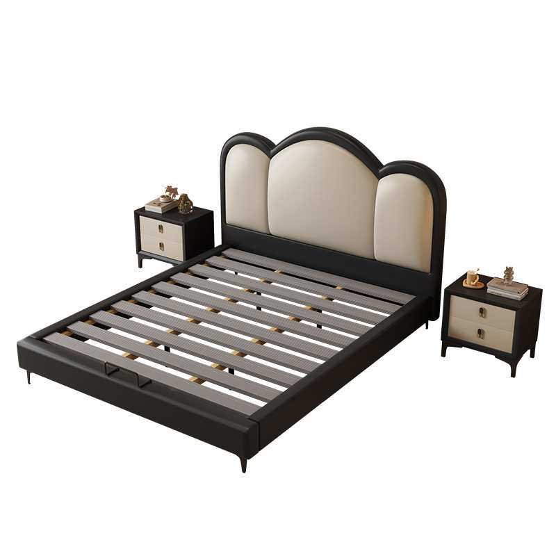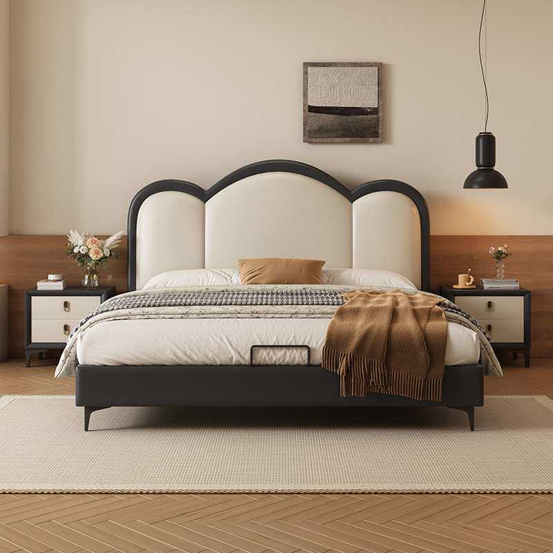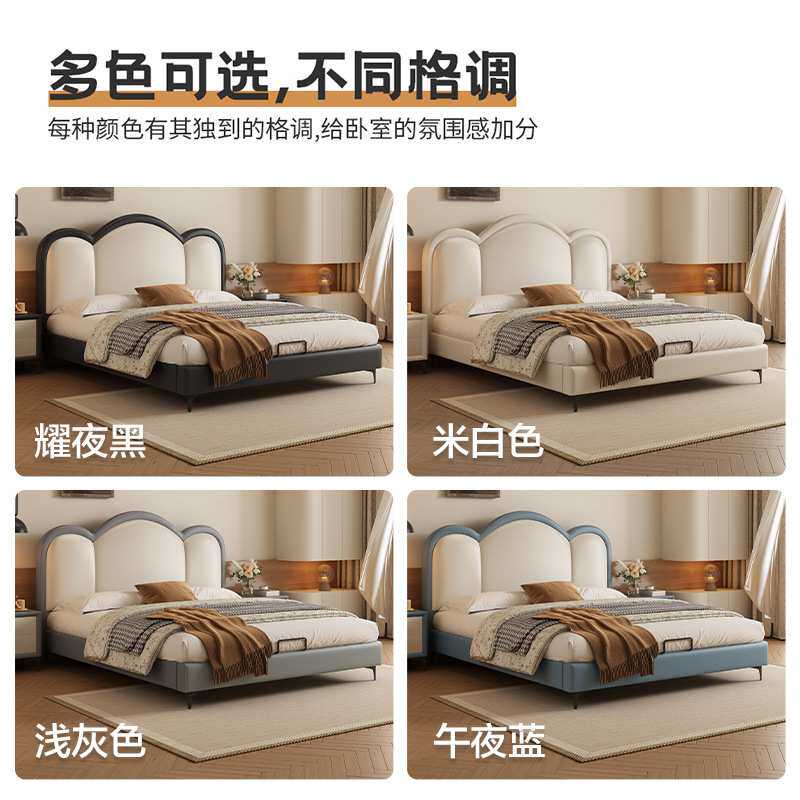 软包床真皮双人婚床卧室海绵软靠包实木皮艺床新款1.8m储物气动床