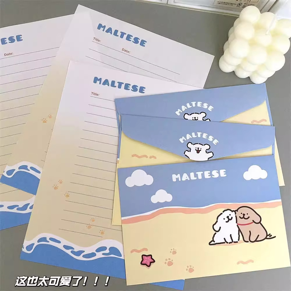 线条小狗信封信纸ins风可爱动漫卡通生日贺卡留言表白祝福礼物女