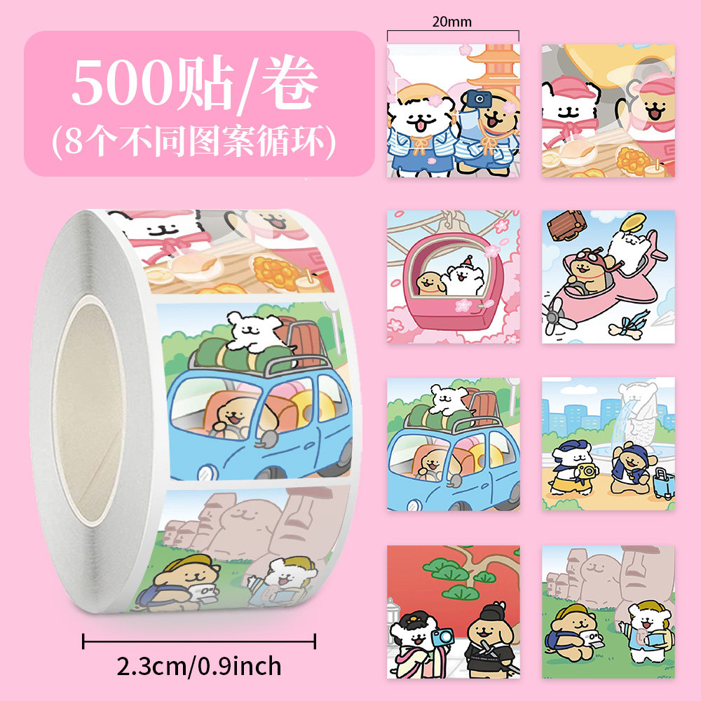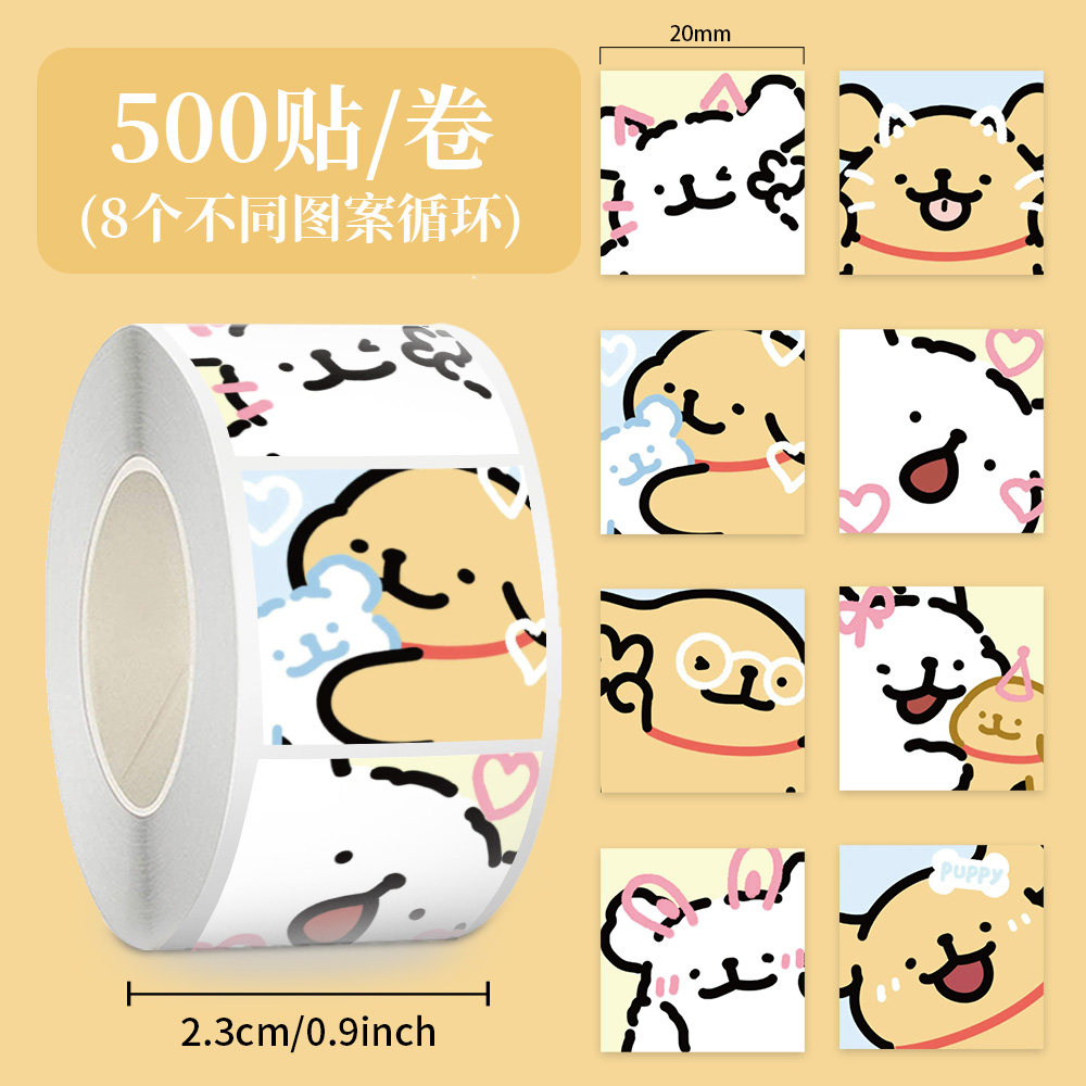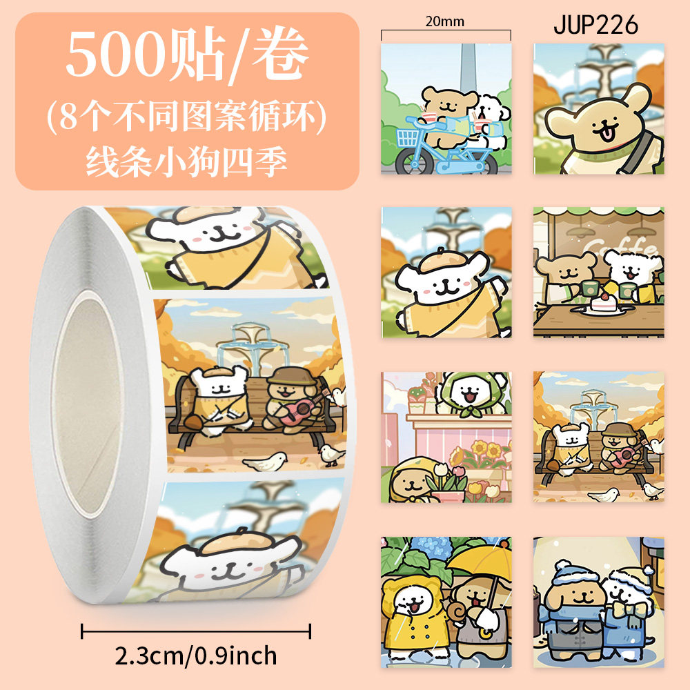 【大图释官方授权】可爱卡通线条小狗卷卷贴纸女孩儿童标签贴纸diy自粘装饰手机行李箱手账防水玩具封口贴画