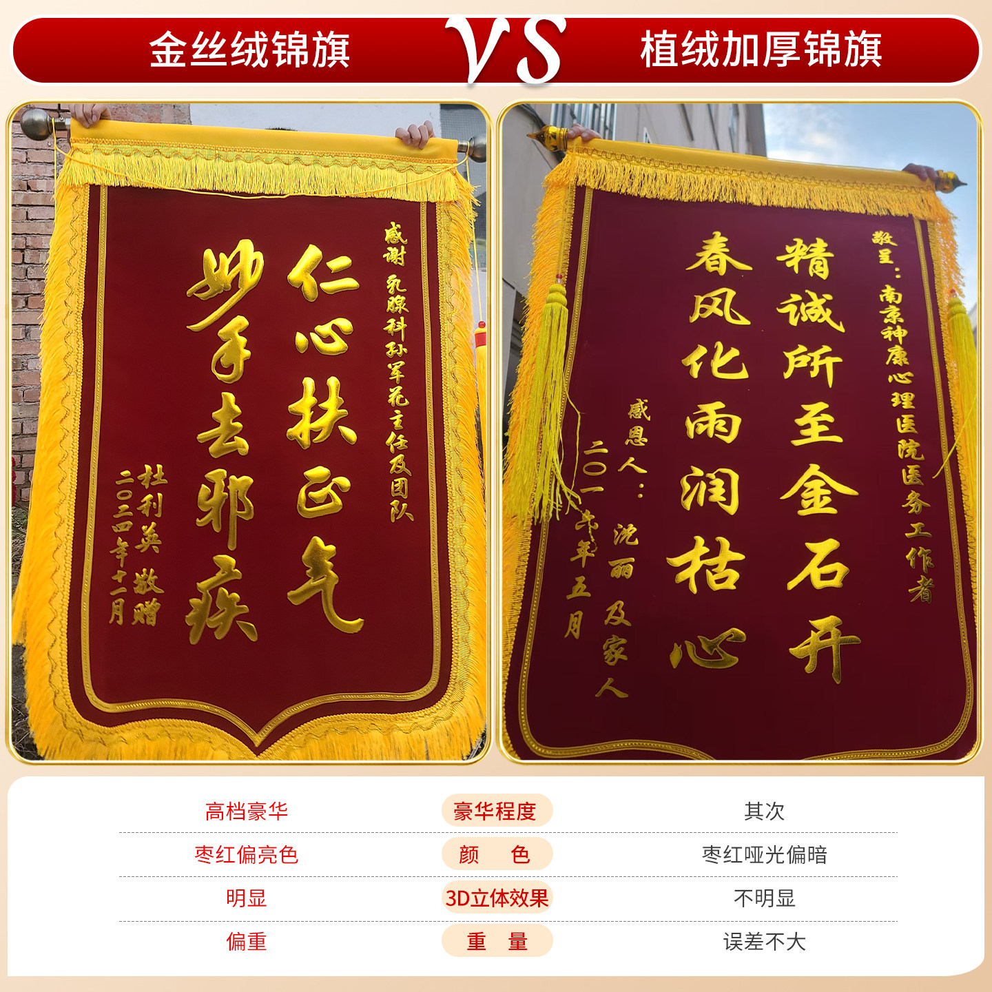 高档金丝绒锦旗定做定制感谢送医生赠送老师民警装修物业旌旗订做