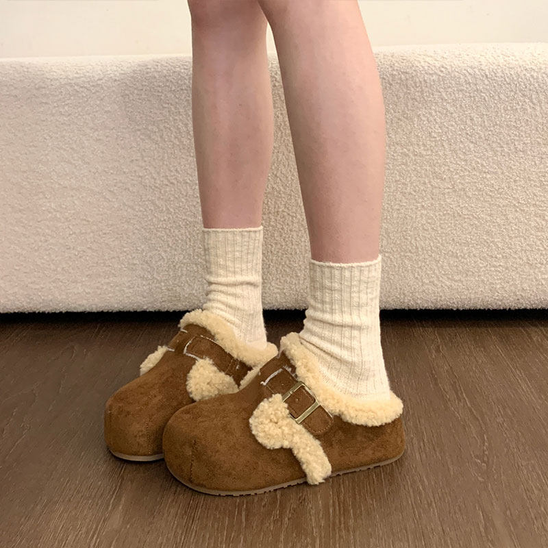叁叔家~内增高勃肯鞋女加绒秋冬保暖毛毛半拖外穿厚底博肯鞋