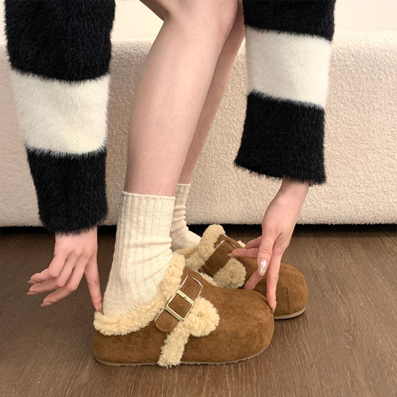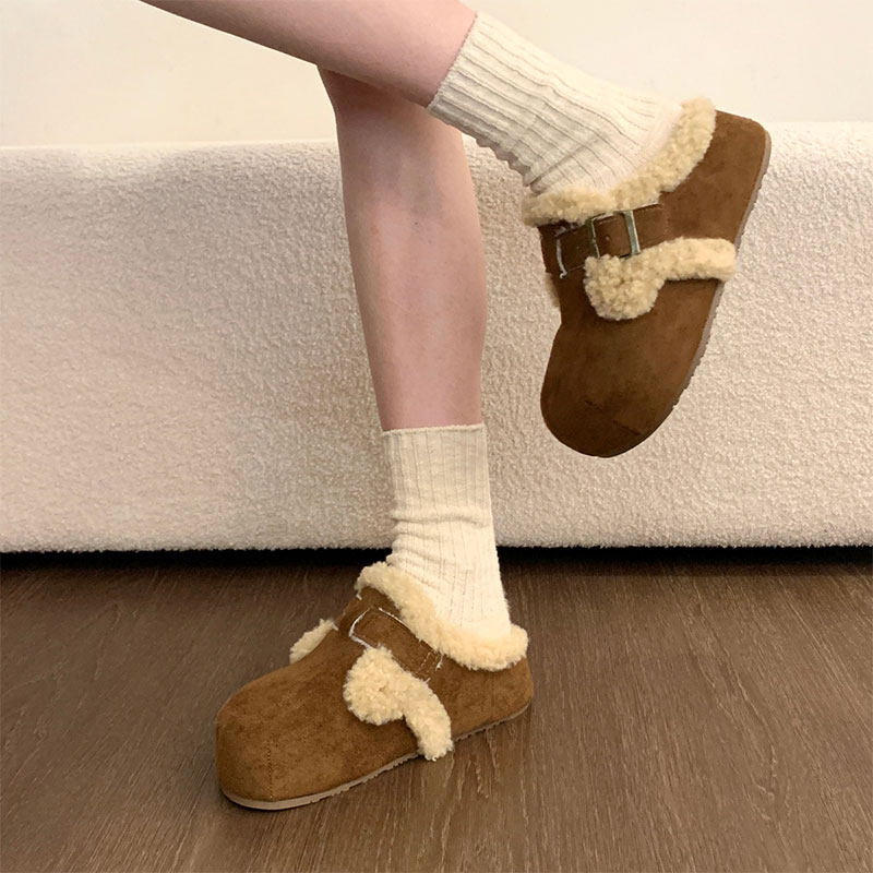周雨彤同款厚底勃肯鞋女2025新款冬季加绒半拖鞋外穿增高穆勒鞋子