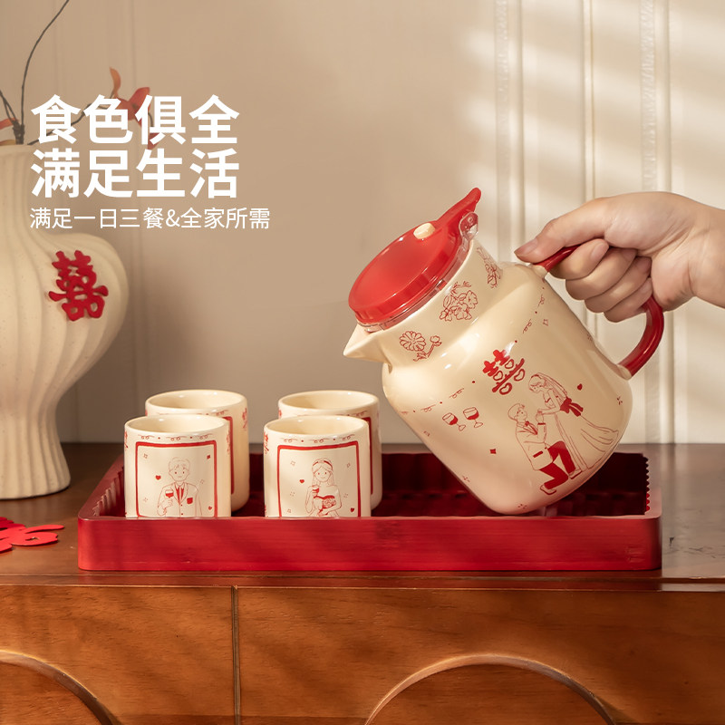 高档碗碟餐具陶瓷新婚礼物送新娘红色碗盘筷套装乔迁新居结婚礼盒