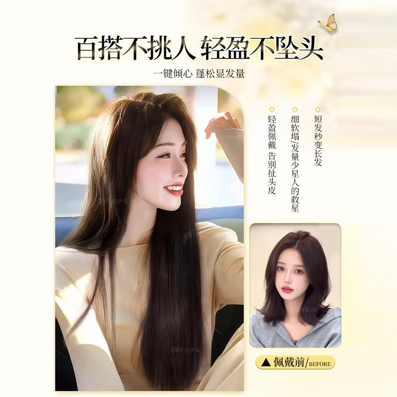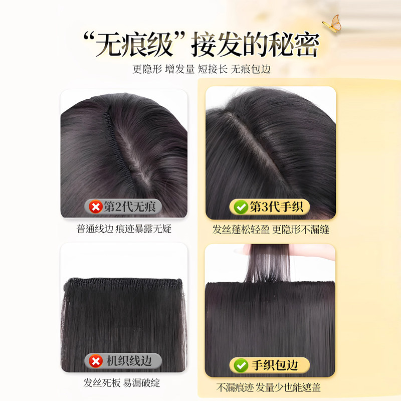 假发片女长发仿真发包边增发量蓬松三片式无痕直发接发片隐形轻薄