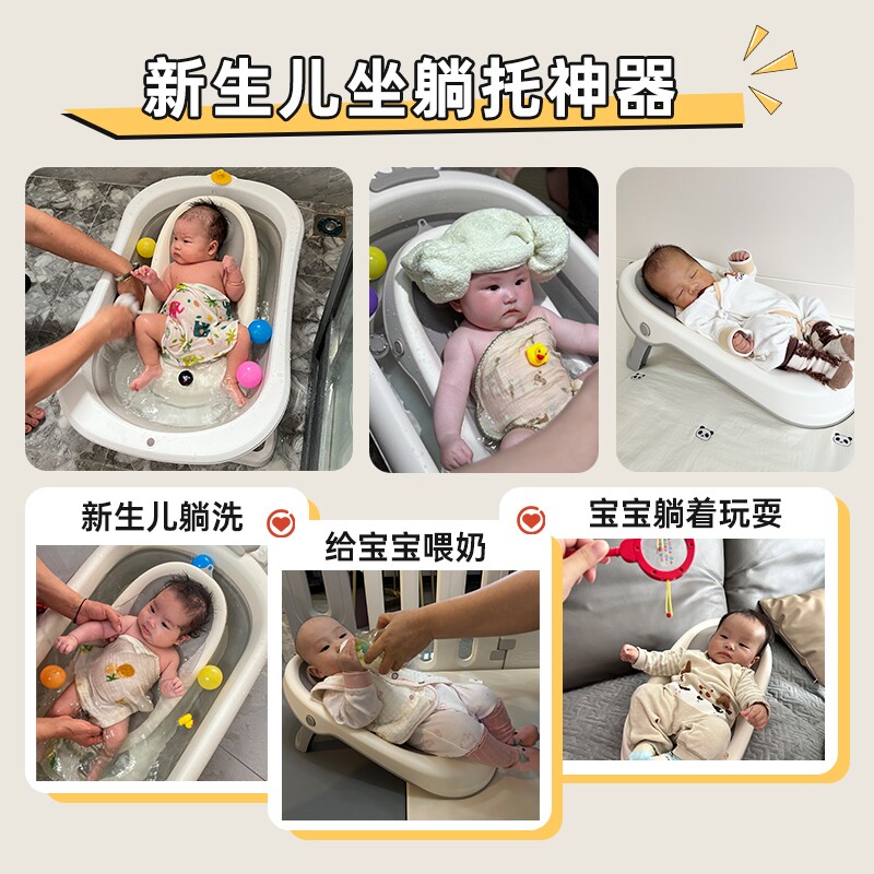 IUU婴儿洗澡盆宝宝浴盆大号浴桶折叠坐躺托浴架家用新生儿童用品