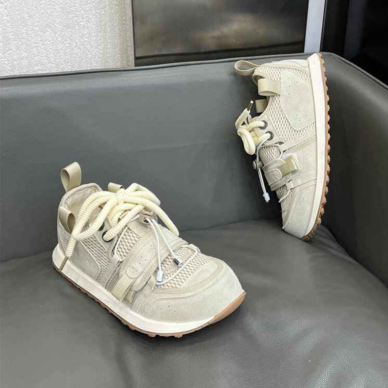 男鞋2026时尚大头丑萌鞋透气网面阿甘鞋软底运动休闲鞋白色圆头