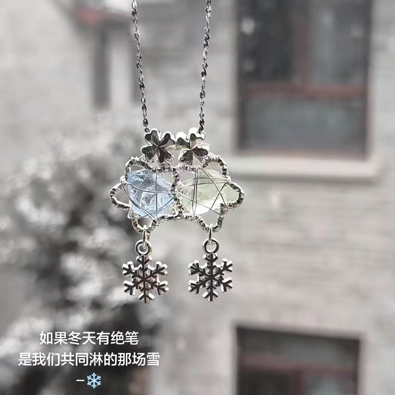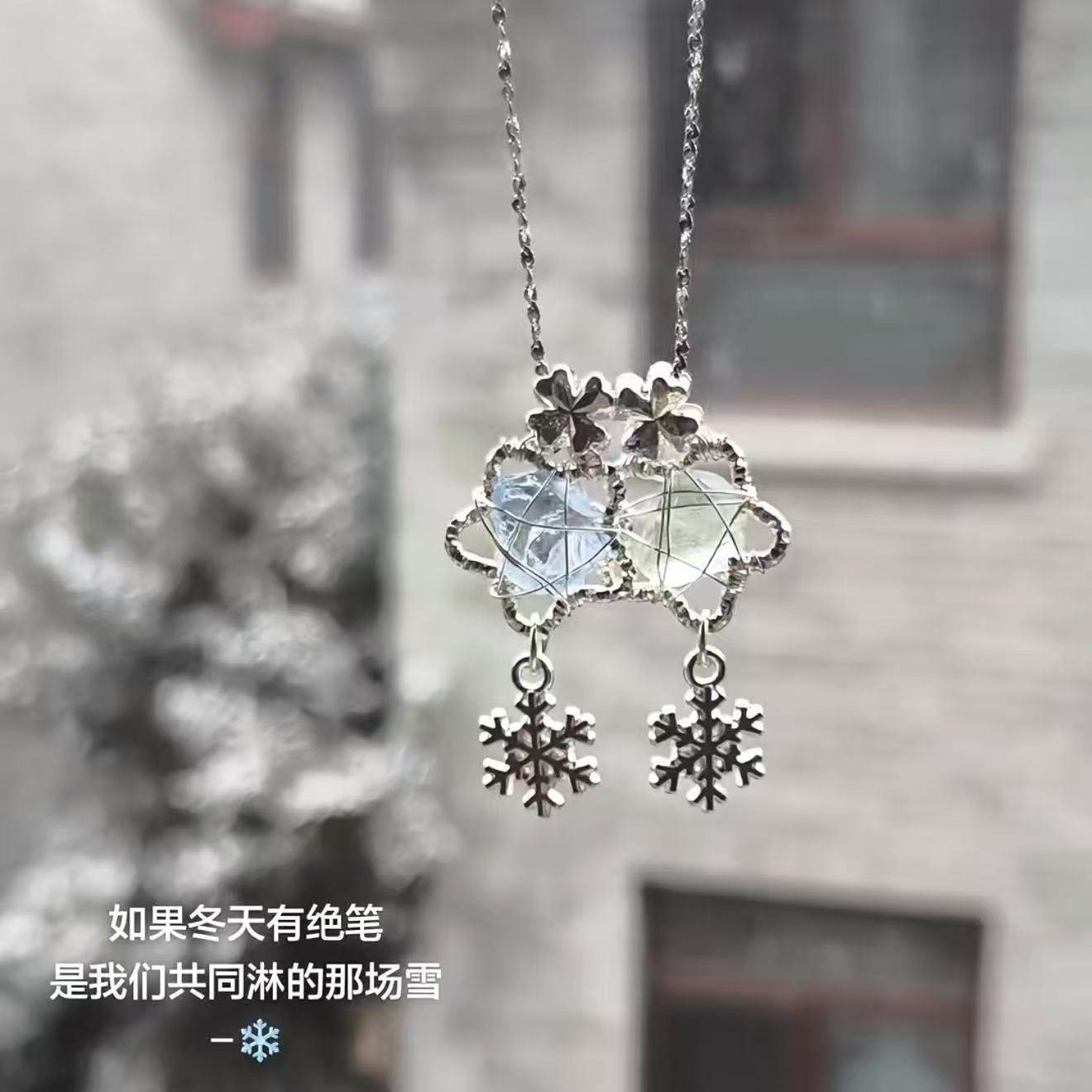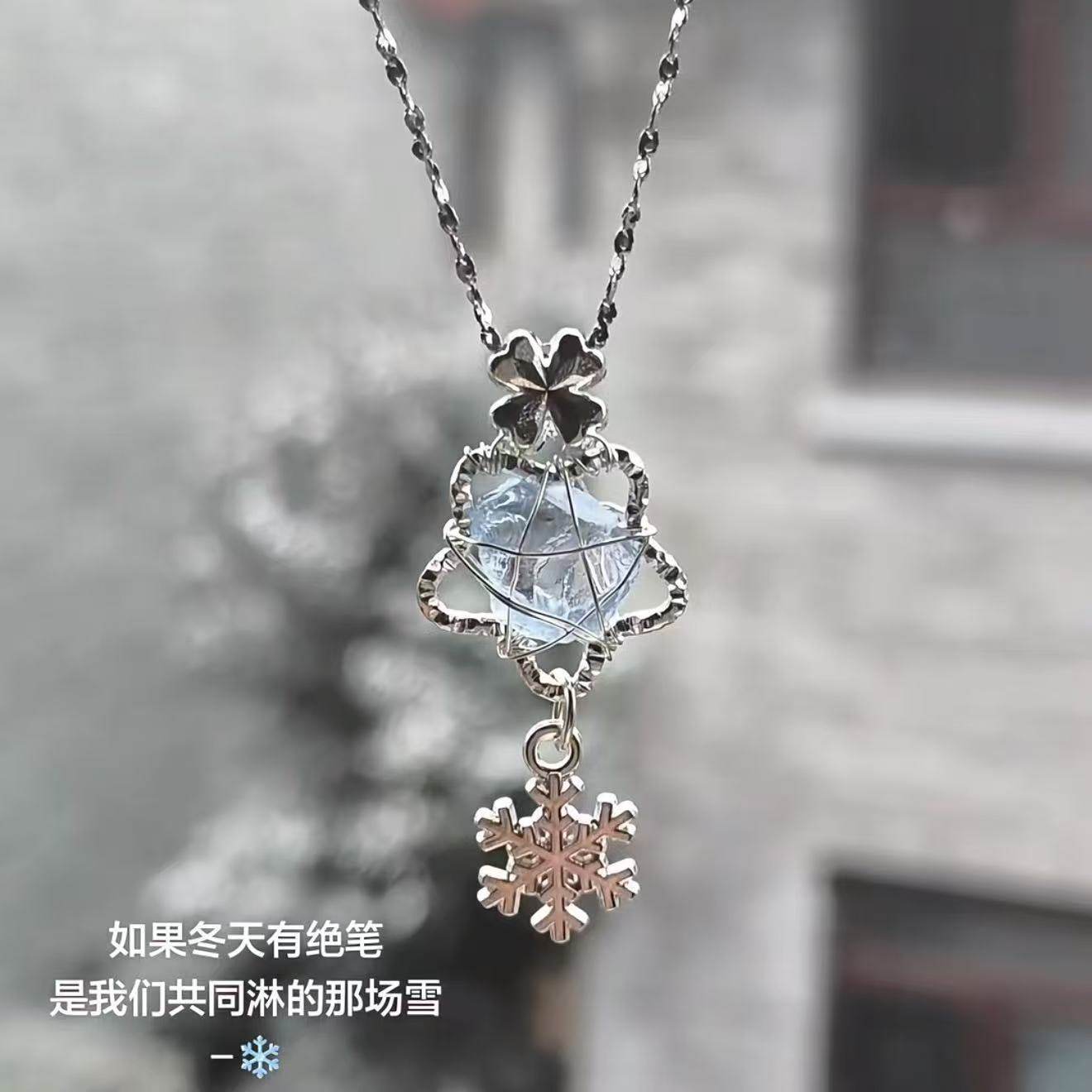 冬季雪花吊坠绕线四叶花项链女时尚气质设计感高级精致颈链送礼物
