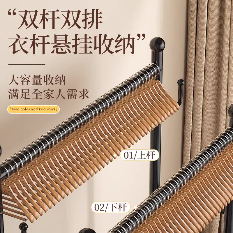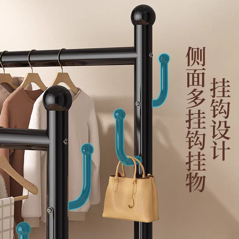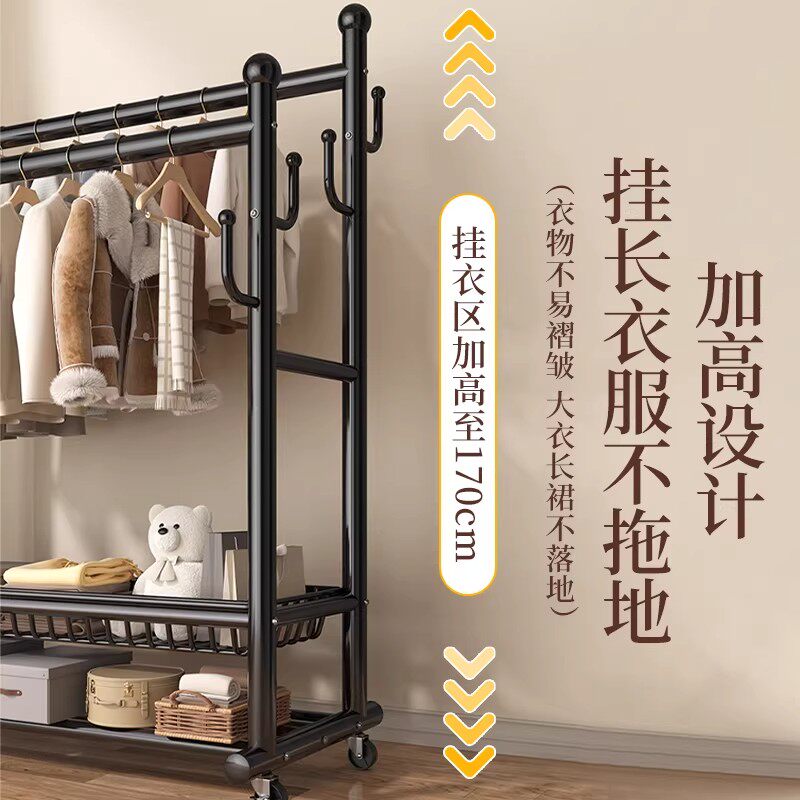 挂衣架落地家用卧室多功能收纳衣帽架大容量可移动双杆阳台晾衣架