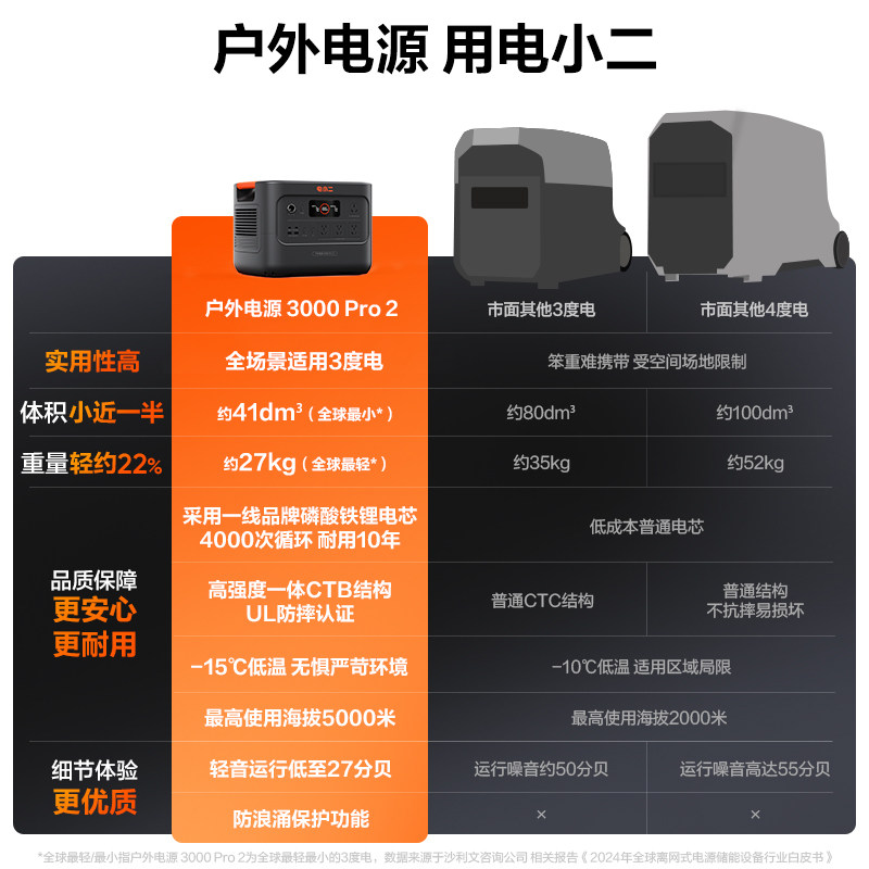 电小二【3度电新品】3600W快充户外电源220v移动大容量16A插座自驾游车载蓄电池备用电瓶摆摊专用磷酸铁锂
