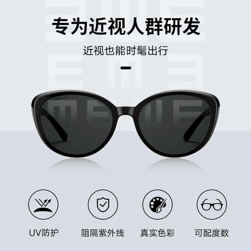 帕森定配近视太阳镜女 复古猫眼修颜防晒可配度数板材墨镜PJ7819